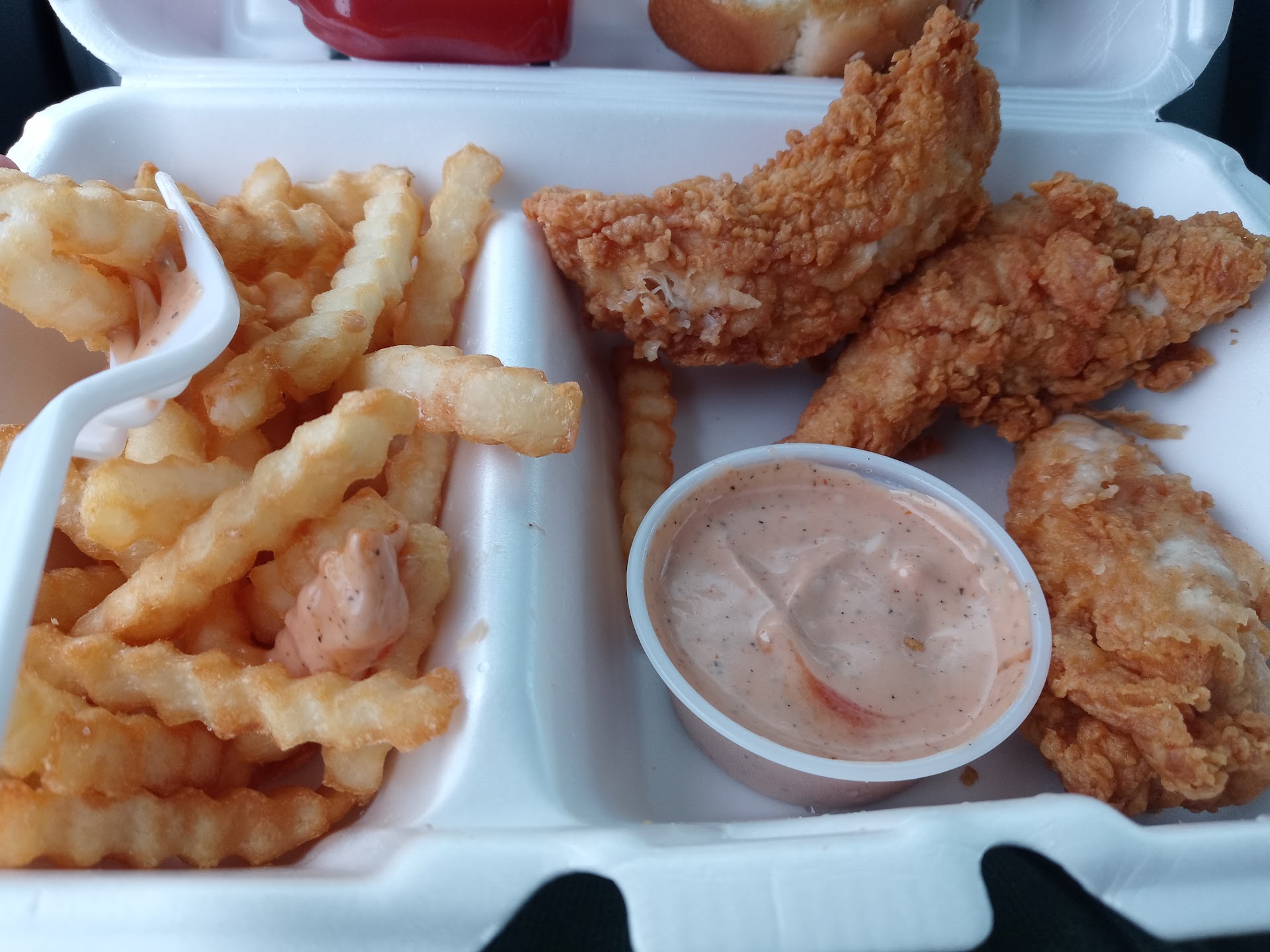 Ā Ā Ā Read moreTonight was the first time that we've tried any Raising Canes. I enjoyed being able to eat in the dining room. The bread was the best thing that we ordered, it was fresh and delicious. The chicken tasted good, I like the breading however, it was the smallest chicken strips I've ever had. Not worth the price I paid for the meal. I didnt like the coleslaw, it was too tangy. The fries although their fresh and they are crinkle fries there not very big but they taste ok and there fresh. I ordered a combo meal and was still hungry when we left. Before we left I ordered extra bread for all of us though because it was delicious and to help fill us up. For the price I paid , we shouldn't have left hungry like we did. 2 strips would have been equal to the size of one strip at other restaurants such as...