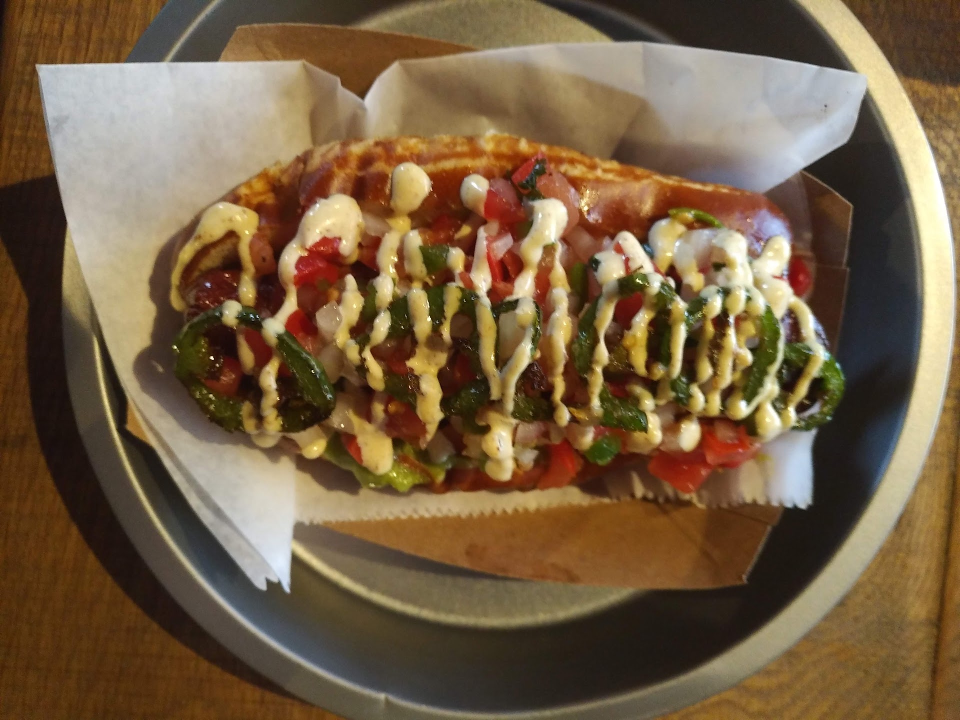 The dog was good, in fact the pretzel bun held up well and the dog had good snap and flavor. BUT for $13 it was skimpy. 4-4.5" 9f dog with no chips or fries for that much is not sustainable.