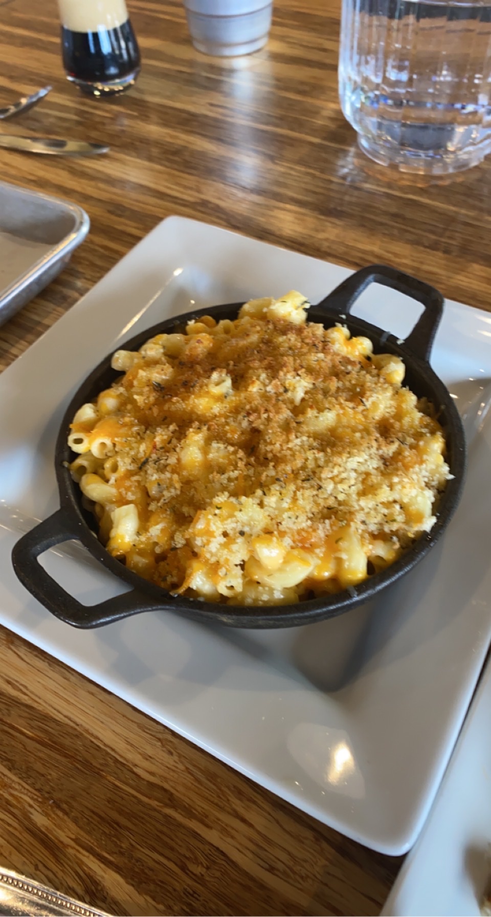 When the food arrived, it was surprisingly decent. But my sister paid $6 extra to get chicken on her salad, and it was just a tiny sprinkling. Absolutely NOT worth an extra $6. I wasn't super happy with my side but mainly because there was no waitress to ask questions to about them, so I just took a wild guess. The dips were really good and the churros were super.