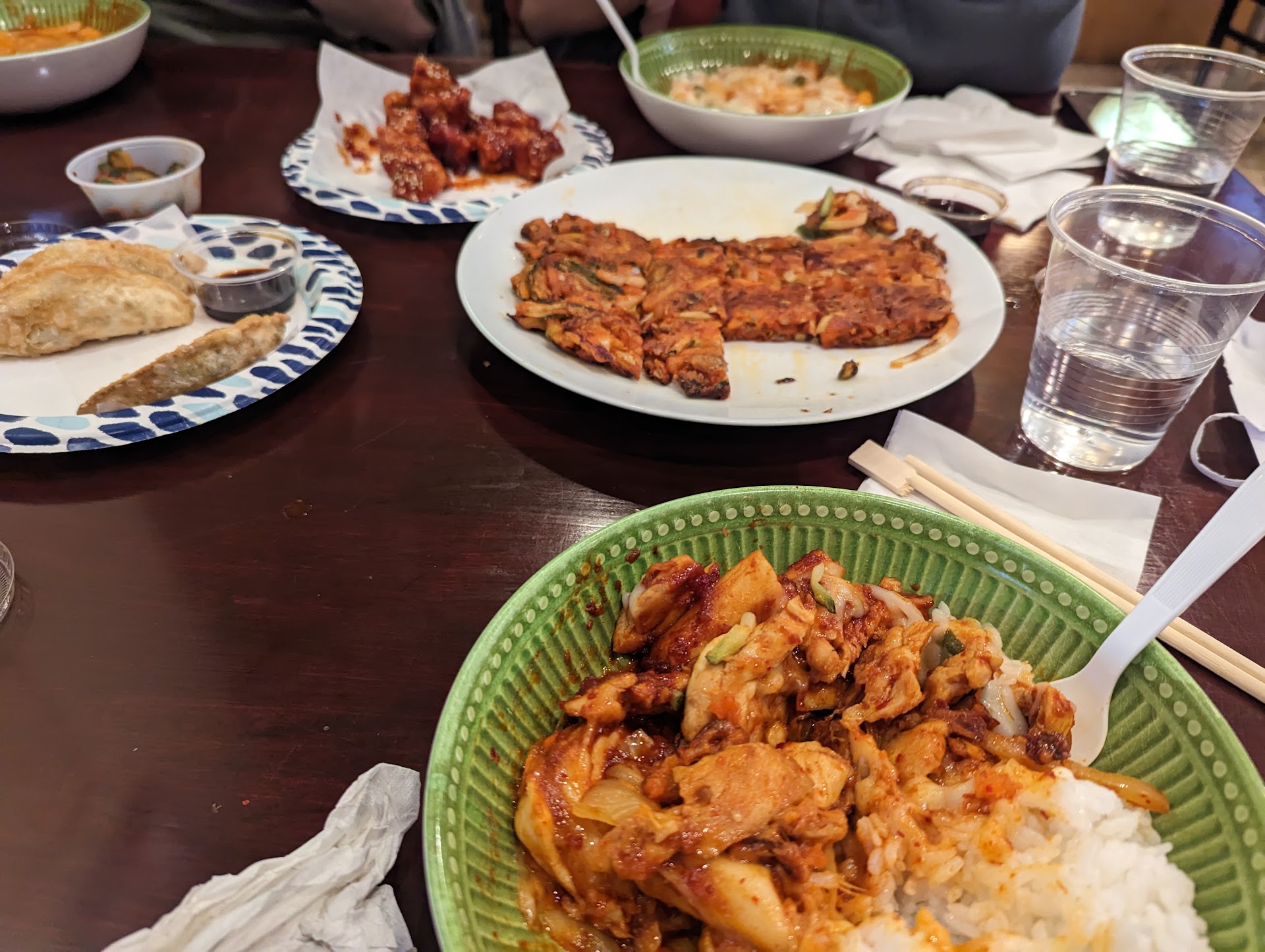 The food is great and the portions are substantial. We had Dak-kangjung and chicken fried rice. The dark-kungjung was the soy sauce version, with some sesame seeds; it was very good, but next time I’m getting the spicy version. The chicken fried rice was outstanding. It was very moist, and tons of chicken - it could easily stand alone.