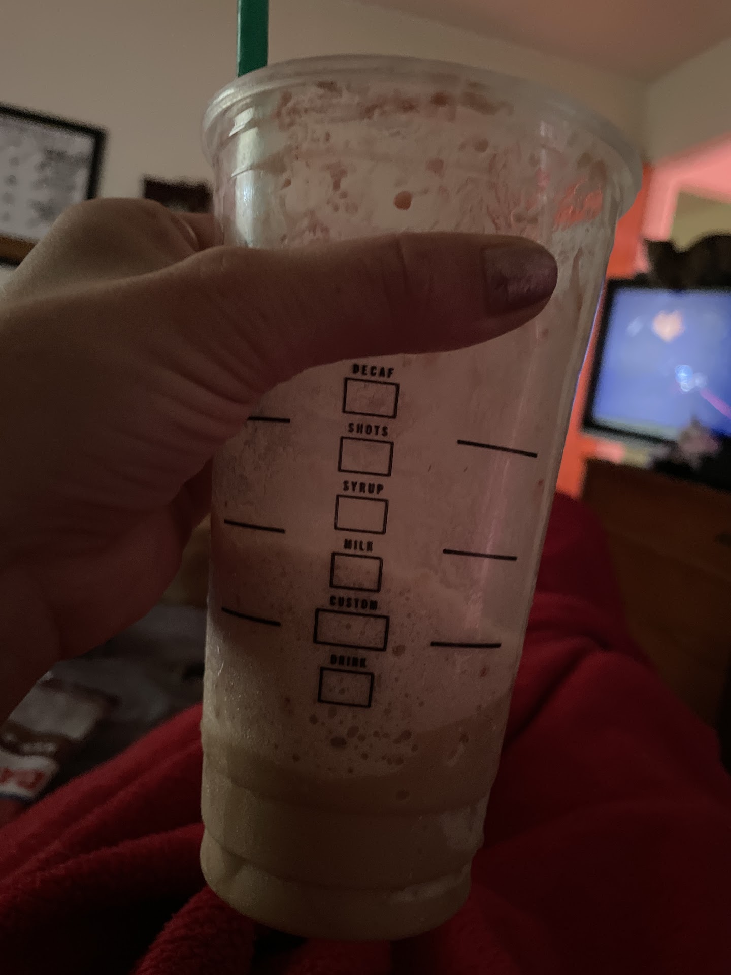 We didn't get it either, which is fine. Also ordered an iced white mocha. Tastes like a regular iced latte. Thought the syrup might have been stuck at the bottom, sometimes some barista's don't swirl the drink and dissolve the thicker syrup all the way. No matter, you get busy, I used to be a starbucks barista, so I know. But looking at the bottom there is no syrup, instead, black dots. I thought grinds, at first, but they are all uniform and smaller than grinds. The espresso machine usually doesn't give off this many grinds, either. They look like the powder in the vanilla bean. They are the powder in the vanilla bean, which baffles me. There is no standard drink that you put vanilla bean powder into that has espresso shots layered on it, so... what? This is why I asked if there were new people, it's not like that's a common mistake. I still drank it, because it's still a latte, though because it was just a latte, I was a little overcharged, but not a big deal. I'm...