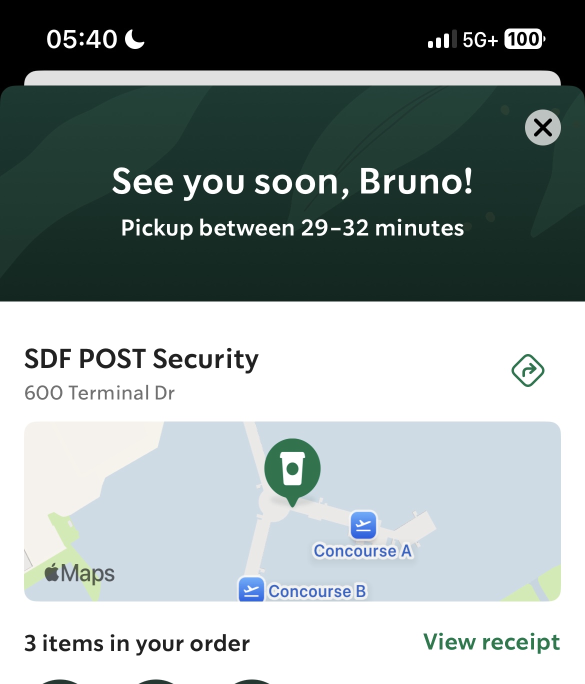 It took over 35 minutes to get my coffee which I ordered on the mobile app and didn’t customize it, just ordered it as it comes. Simple, white chocolate mocha. They were very busy and my flight was delayed (surprise, surprise)- so I waited patiently… almost 40 minutes after ordering on the app I interrupted a busy (but kind) man working behind the counter and asked him to just double check that my order was still in the queue. He was so very polite despite the circumstances. They found my order sitting on another counter. I assume it had been ready for about 10 minutes but they didn’t put it on the counter where the mobile orders go (you know, where the lettered labels are for you to check for your drink based on your name.) And being that I was there for 40 minutes, I know for certain they didn’t call out my name. I recognize mistakes happen. Maybe I should’ve been more diligent to check the counter near the register but either way, I don’t want to leave a poor review because given the busy nature of this location, I understand it’s challenging.