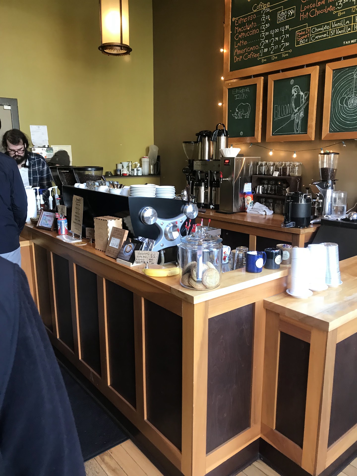 Edit 13 February, 2024: I love Sunergos. My wife and I fell in love at Preston when Sunergos was just Preston. When I was deployed overseas and came home to be with my wife during the birth of our second son, a dear friend, and an Original Sunergos employee, delivered coffee AND a rice crispy brick to the hospital. I watched Michael (the second Man in Black) write his manifestos in the corner of Preston. I’ve seen 7 years of Sunergos employees come and go at the 5th street location.