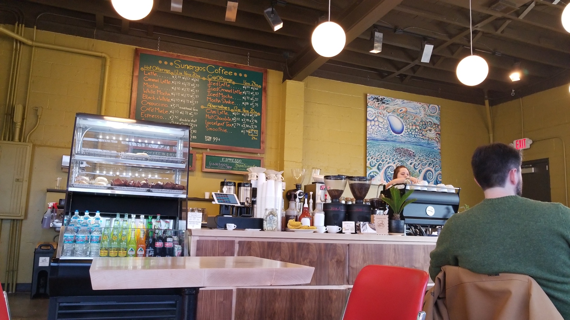 To start I actually worked for a high end wholesale coffee company that served Aspen in the late 90’s - way before coffee became a thing in the USA... I quickly became a coffee aficionado and understood what coffee is, especially carefully curated coffee. I’ve had good coffee all over North & South America and Sunergos Coffee is with the best of the best. The aroma, cleanliness of the beans, the finish, the stimulation of the palette... I could go on but you get the idea. It’s not cheap but for goodness sake put down the bag of Starbucks and go spend a little more for REAL. DELICIOUS. EXQUISITE. COFFEE! So that’s a reviewing their Whole Bean bags of coffee. I also ordered an Americano with an extra shot - delicious, perfectly poured, strong flavor... the shop itself was very nice, clean, easy to find, roomy... two college aged girls working were super friendly and were quite knowledgeable about their products. To be able to have such an exemplary coffee experience in Louisville is something to be thankful for. I HIGHLY RECOMMEND paying them a visit, IF you like coffee - REAL...