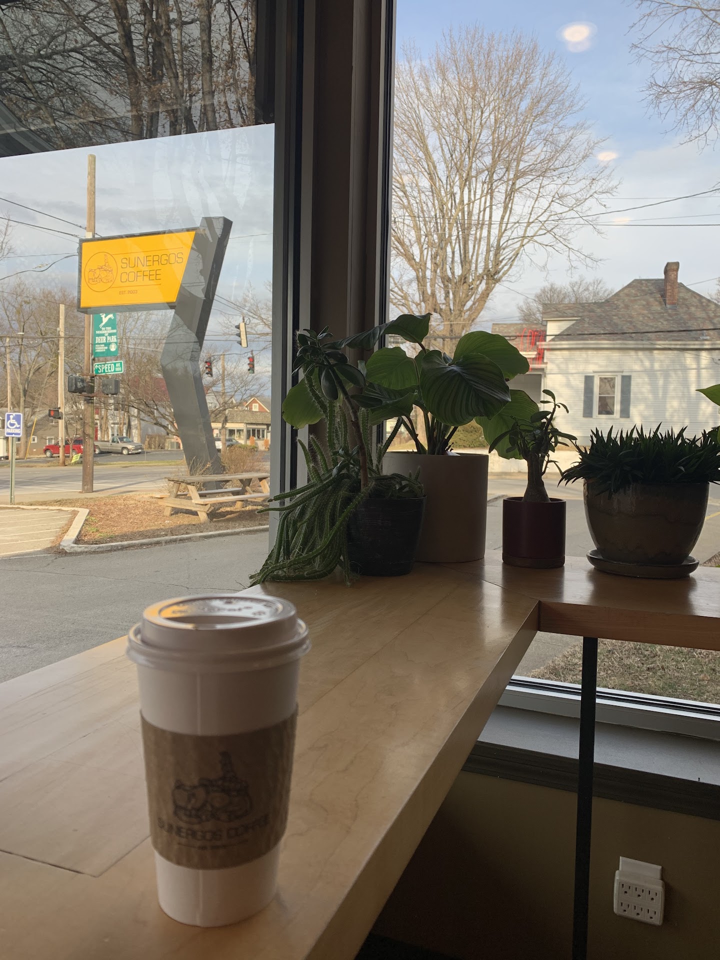 Read moreI got the chai latte and it was pretty good! Sunegros plays rock music and I think that's the best way to describe it. It's not really your soft and cozy coffee shop with an indie playlist where you read or do homework alone vibe (although you can certainly do that, it's what I did) it's more of a social place to have a "meal" with friends (I'm going off of the feel of the place here, not the menu lol). There are several park benches outside and on the side of the store is a covered sunroom-like seating area. There's also a standing area which I liked because I prefer to stand up while working on my computer and there are outlets available, but if you would rather sit in that part there are no bar stools for you. For the indoor store seating area, there's not really a lot of room and space between the tables and chairs so it...