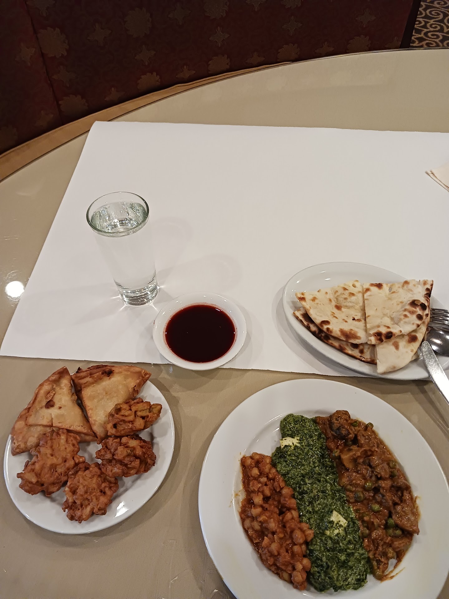 Went first time for valentine dinner hour ago got very disappointed. Service ok. Place did had any music or nothing….We ordered 2 separate appetizers one samosa and 2nd vegetable pakora they combined in one plate both appetizers and brought at our table with two very small containers chutney, both chutney had so much food color and samosas stuffing had only potatoes no peas… In main entry we ordered paneer masala, mushroom mater and Tadka daal.. Tadka daal should be yellow daal on top of tadka but they brought us literally dry moong daal line you can see in the picture, paneer masala was so bland no flavor and Masroom was ok, Naan was so thin and hard. My daughter ordered mango also and she was disappointed too, last was too sour… Will not recommend anyone and will never go back to this place again.