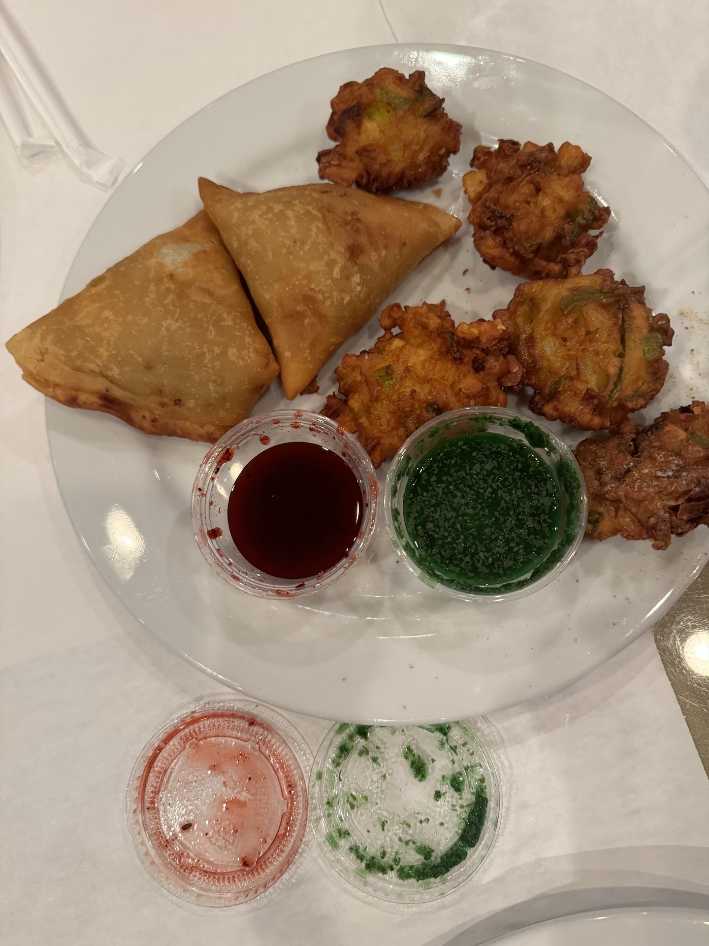 The dahl lentils tasted like they were burnt or been left sitting out too long or something. Both of us tried one bite and noticed something was off with the taste. Other than the lentils in the buffet, the only other vegetarian option in the buffet was a mushroom dish That was almost empty, and basically was kind of like a mushy mess all pushed into the corner of the pan it was sitting in, and it really didn’t taste like much. If you don’t eat chicken, there is really no option for you here unless you want some burnt tasting lentils or some lukewarm slimy, gooey, mushroom stuff that I have never experienced before. With only 7 items total available on the lunch buffet (burnt tasting lentils, the slimy mushroom stuff, three different chicken dishes, a dish of lettuce and tomatoes with no dressing available, and a pan with some greasy samosas and pakora), for a vegetarian, there was really no choice of anything to eat other than a tiny plate of lettuce with some tomatoes and cucumbers in it with no dressing nearby or deep fried greasy stuff (samosas or pakora). At $15, this was laughable, and definitely not a good value.