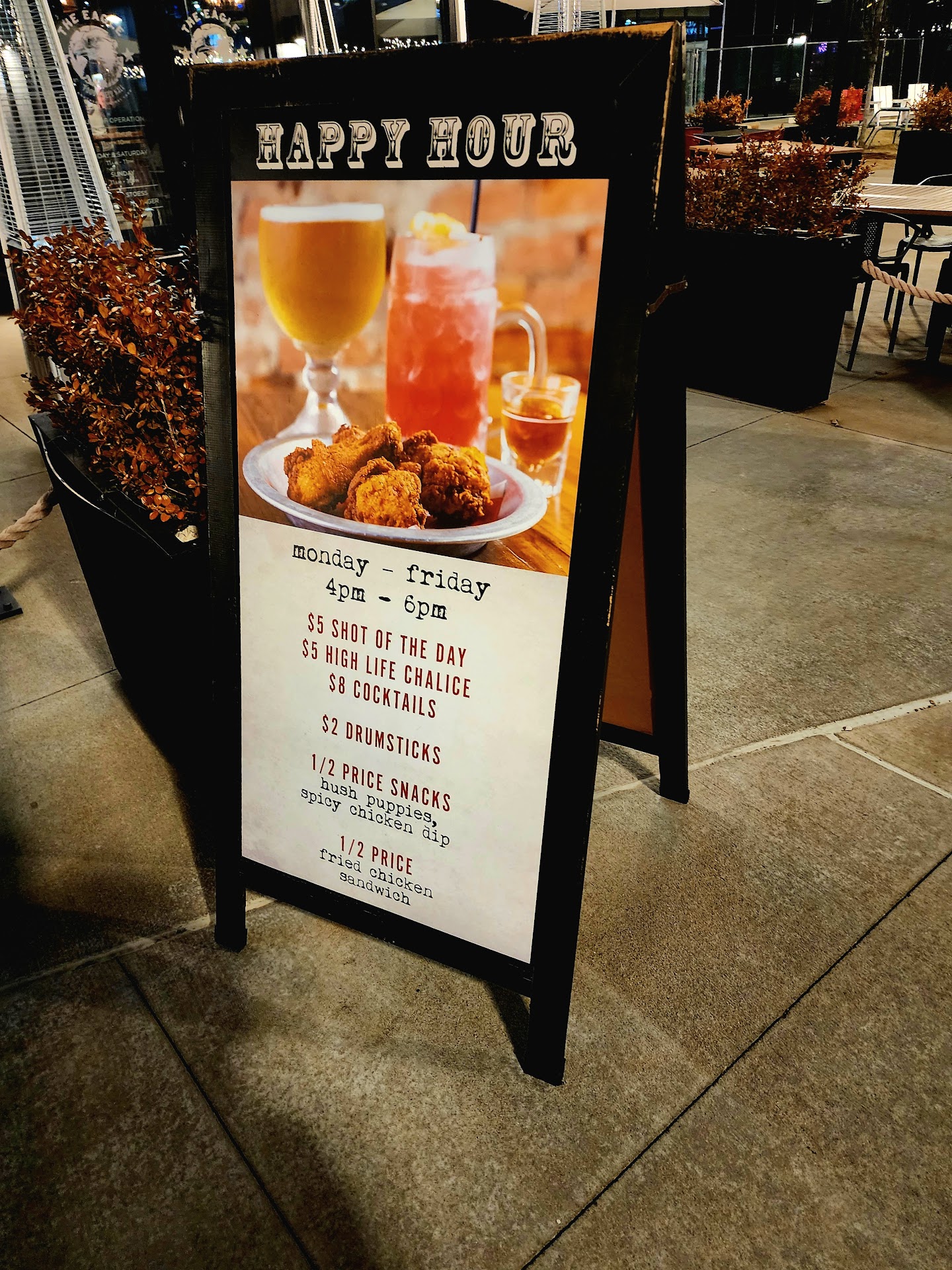 Tonight was a friend of mines birthday, and we just wanted to switch up our usual 'go-to' place to eat. As per any Saturday, everywhere was going to be busy. So we expected a wait time. This place, in particular, had a 2 hour out time frame. Normally, we'd probably pass, but since we didn't have a prior reservation and our friends said it was good. We decided to wait. I can honestly say I'm glad / it was worth the wait. First impression, the music was loud. It's almost too loud, but oddly enough, you can still talk to those around you without having to scream. It was a but congested. If you're in the outside booths, chairs have to be moved at surrounding tables to get out. It can be a bit awkward, especially when all the tables are full. The bar is smack dab in the middle of the restaurant with plenty of seating. Almost every wall has a TV. So you can see pretty much any game that's on. To my knowledge, they have a good selection of alcohol but don't quote me. I'm not a big drinker. Plus, they seemed to have been out of a couple of their selections. Along with a few options for indoor seating. They also have outdoor seating with heaters available. Overall, this place is very clean. So that's always a huge plus. The place was slammed. So it was nice to see that cleanliness was still a priority. Second, everyone who worked there was kind, courtes and pleasant. The crowd was overwhelming, but everyone handled even the smallest setbacks with grace and dedication. Lastly the food was great! I'm usually a picky eater, but this place is chef's kiss. Definitely a must try one of everything kind of place lol I personally had the grilled chicken sandwich and the mashed potatoes. Both were very good. We also had the hush puppies and the dip as appetizers. Again, it's very good. Also, some must try menu items. Overall, this place is great. A must try place to add...