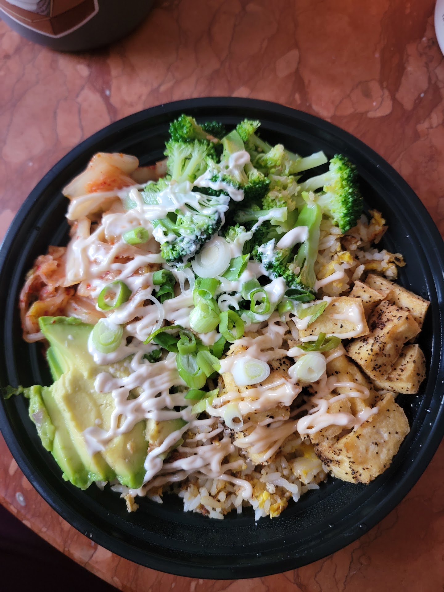 I ordered a "build your own" bowl with fried rice, kimchi, tofu, broccoli, and avocado topped with yum yum sauce and scallions. The food was pretty tasty! The veggies seemed fresh. The broccoli had a yummy sesame flavor, the kimchi was delightfully tangy and spicy, and the tofu was a great texture. The fried rice was a bit dry/bland but the toppings made up for it mostly. I give 3 stars because the ambience/vibe of the place was stark and actually kind of uncomfortable. No art, no menu posted, very empty, and staff seemed apathetic and glued to their phones. I didn't even know what the restaurant was called until I looked it up after leaving, because it isn't posted anywhere inside or outside of the place. For now, I'll order to-go to continue to support. But it has the feeling of a place that opened a couple months too soon, before they were really ready to present a brand or hospitality. I will come back again in a few months to leave another review possibly once it's more established. There is a shortage of good restaurants in the south end, so I'm really rooting for it to...