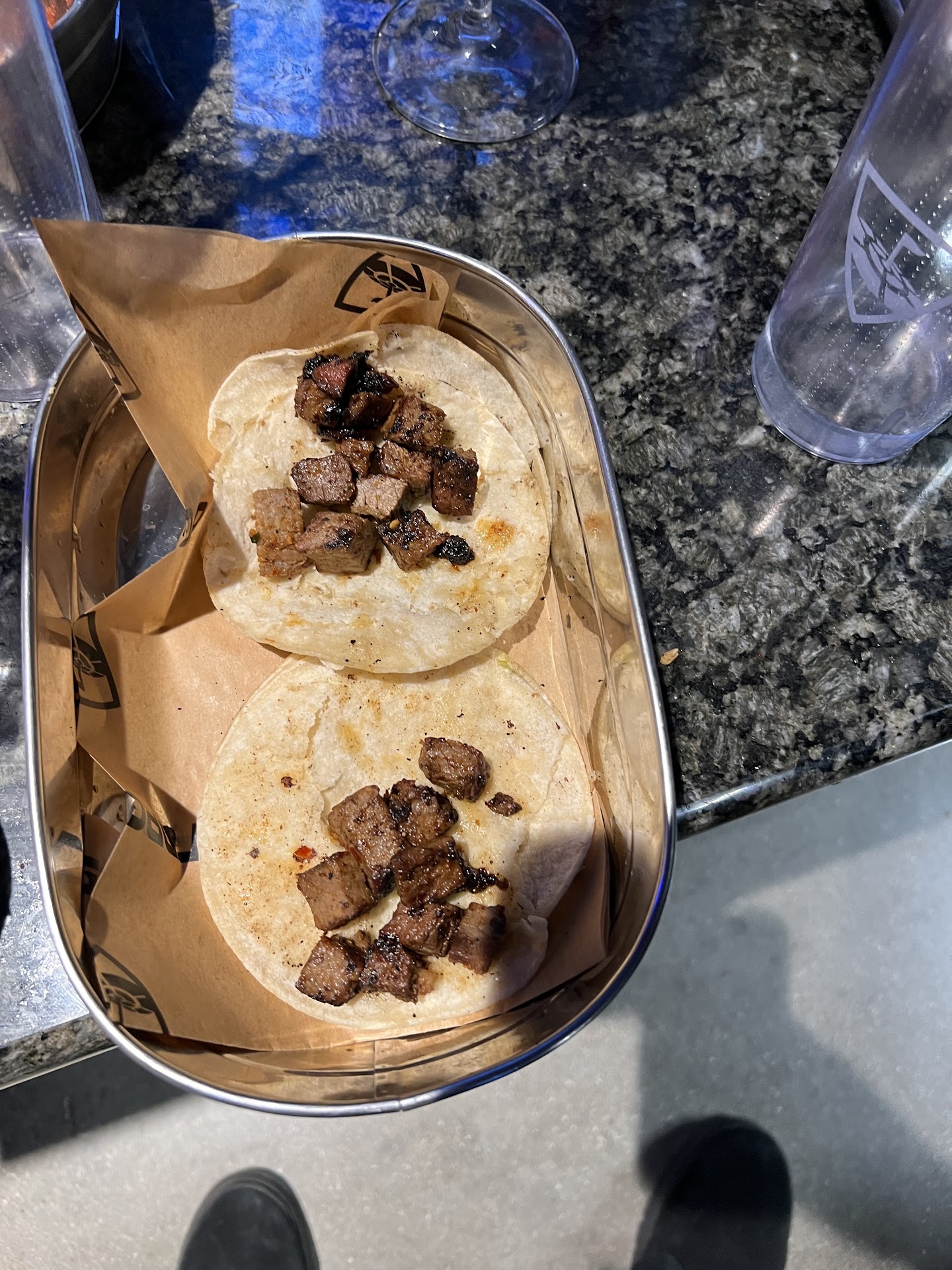 While we were waiting for hours after our specified bay time, we got some food and drinks. The food was expensive (although this was expected). I did not expect the food to be burnt to a crisp and inedible. Almost every person’s order came out wrong. After receiving orders wrong the second time we took the food anyway. We were not given a discount. Our waitress repeatedly said that she had only been there six days, and was obviously not prepared. Many of the drinks other than beer tasted like water.