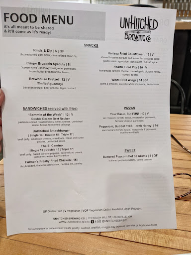 Read moreGlad we finally made it to Unhitched. The place looks absolutly phenomenal. You can tell they put so much thought and effort into the layout and design. Its also nice to see them re-purpose and use as much local building material as possible. The food quality and quantity is defiantly way above average, but we all felt that it's priced a bit high for bar food. I had the Cuban and it was delicious. The fries were very good, but a bit on the salty side for my taste. The beer is also very good. Our first visit was more for the food but couldn't resist ordering a flight. There wasnt a single beer I didnt like. The juicy IPA was my favorite. Im glad Louisville is finally getting with the times and Im sure this place is going to do well. My only real gripe is the prices for food and beer is a bit on the high side. 2 adult meals, a kids meal, and a flight of beer was over...