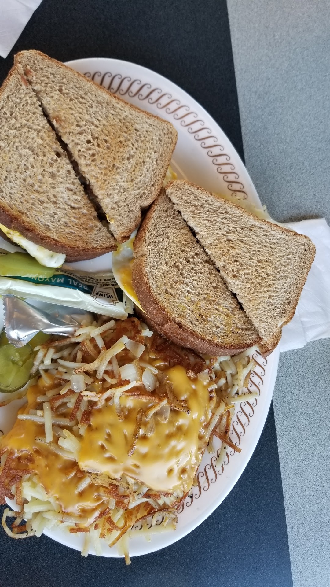 Read moreWish i could give this place zero stars... Literally the worst waffle house experience of my life and i could not wait to leave. I couldve been like the gentleman next to me and left before ever receiving my food, but i was hungry and usually get good portions so we stuck it out. We were immediately barked at very rudely by a waitress to move from where we were standing and waiting. I guess we were in our way and she couldnt muster up enough energy to ask in any sort of kind or polite way, but i digress. Food took a while, which is pretty normal and expected for waffle house, but the issue was that the gentleman who came in 20 minutes after us and placed the same exact order got his food well before us. During this extended span, we watched the staff spiral into a storm of hellish poop fire (censoring myself for googles sake). More food was making it to the trash than to the customers, orders were overcooked, burnt and sloppy and kept getting returned. The staff were arguing with one another and more concerned with finding quarters to restart the jukebox than working as a team to get the job done. My coffee was never refilled, my waffle had raw batter on the top, and to top it all off, they decided that it was too much of an inconvenience to cook the two eggs that i ordered, so they used their dirty hands to take some eggs off the plate of 5 eggs my partner ordered and tossed them onto my plate. We still got charged for 7 even though we certainly didnt receive them and were honestly too exhausted and over our rude, terrible server to complain. Certainly wont be back - advise to you - drive to the next waffle,house where the staff looks like they have showered sometime within...