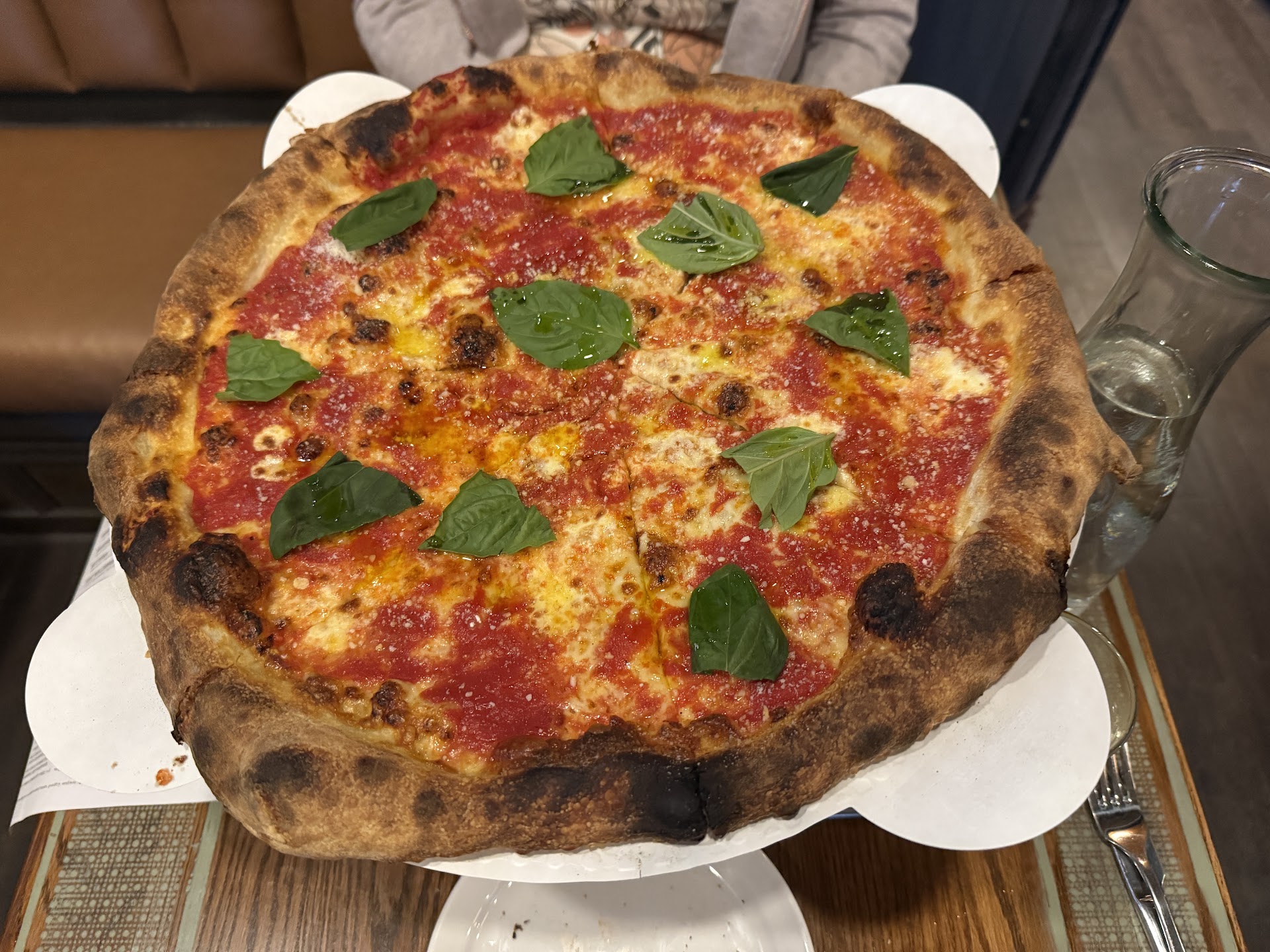 The crust? Crispy on the outside, fluffy on the inside, and perfectly charred in all the right places. It's like a love letter to your taste buds, signed, sealed, and delivered with a side of garlic knots.