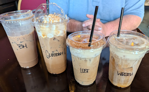 Our drinks were pretty hit or miss in terms of flavor, though they definitely had enough caffeine. Gluttony and Lust were both intensely sweet.