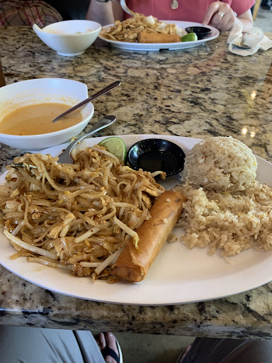 We walked in and didnāt know if we were supposed to seat ourselves or wait. The man who turned out to be our server called to us to take a seat. He brought us menus and waters (no straws) and left. When he came back, he was quite abrupt in taking our order. We both ordered the Pad Thai but he asked us for the kind of rice we wanted- Iāve never had rice with pad Thai but we chose some anyway. I ordered the salad which was drenched in ranch dressing. I like ranch dressing but not that much. My mom ordered the coconut soup and it was so thin it was pretty much water.
