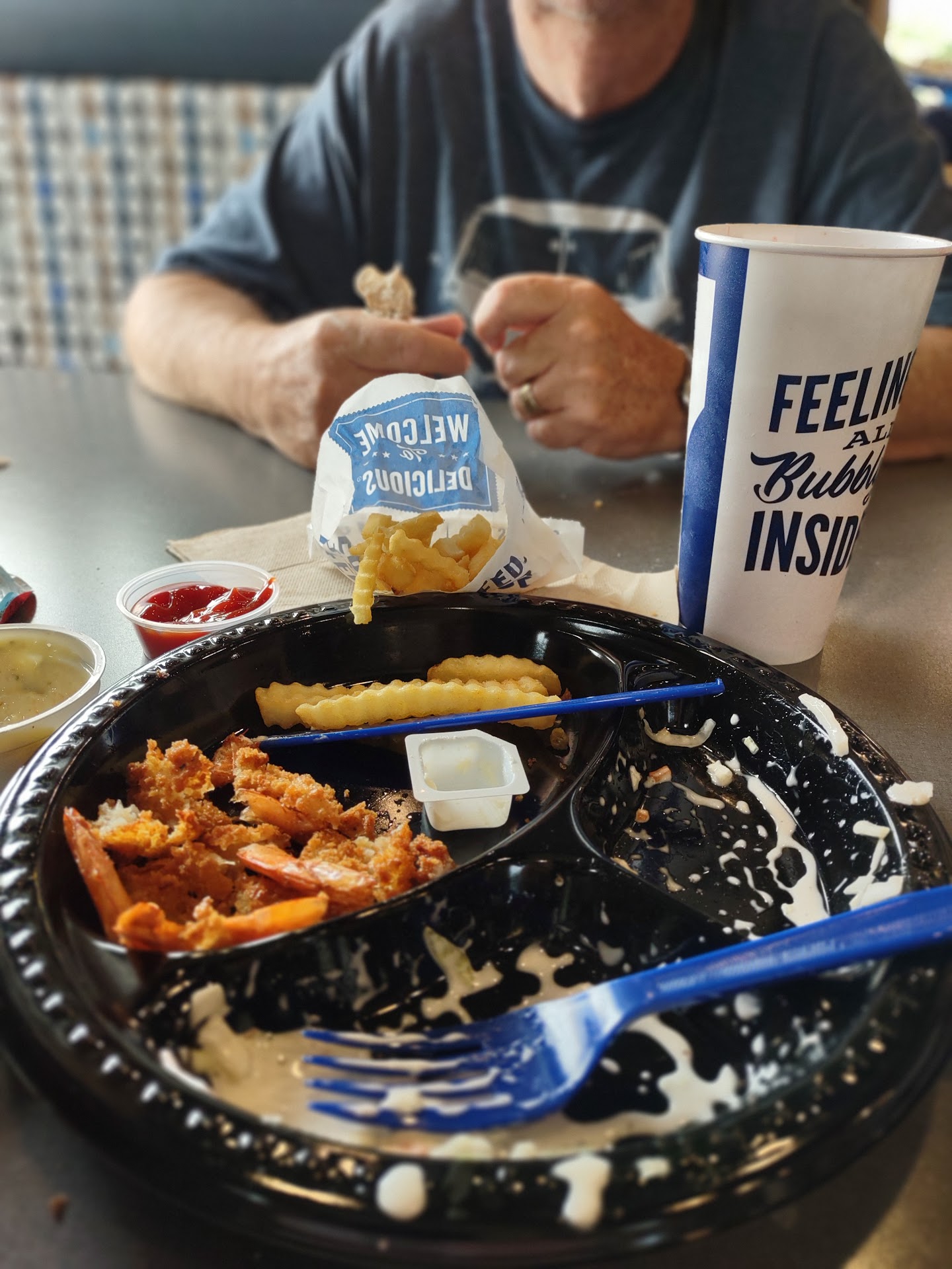 Read moreAugust 2035. Coupon expired a couple of of weeks ago. Tried the cod sandwich and asked for extra tartar sauce which Gilg got immediately. Do not recall an $8 price tag and small vanilla shake was $5.29. No knife or fork or napkins on the tray. Not feeling the love 😘 and our favorite staffer, Shawn, was in a reclusive mood. September 6, 2024 Not the best. During Friday lunch rush and Reuben was great taking the order. Upcharged onion rings overdone, sandwich very greasy and charged 35 cents (a first) for side of T Thousand Island dressing with no islands. Pretty pink though. Used coupon on back of a grocery receipt for 25 percent off. Aug 29, 2024 Shared another Reuben basket with extra dressing and upcharged but worth it onion rings. Senior discount of 5 per cent helps. Dessert of chocolate brownie sundae not worth it to me at $6. August 3, 2024 lunch we shared a Reuben basket with extra coleslaw ($3.19) plus extra drink ($3) Good but missing the thousand Island dressing and a little greasy. Needed to get an extra fork and thanks for the senior discount of 5 per cent. Early afternoon treat on August 2 of root beer float (diet is available) at $5 and small Dish of vanilla at $4 very yummy 😋. Sunday 7/28/2024 it was busy but not crazy. Shrimp dinner basket delicious. Tartar sauce missing but easy fix. Husband tried pork chop sandwich and liked it. Coleslaw wonderful 👍 and fries good. Restroom clean. Staff very personable. Shout out...