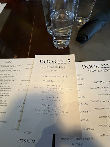 As for the food, The skirt steak was served with a flavored butter and the broccoli and potato sides were decent. Unfortunately, nothing was very warm. The butter never melted because the steak and plate were too cold for it to do so. In addition, the bottom of the pizza crust was covered with burnt crumbs. It appears as if they need to clean the oven. I love to support downtown and local establishments, but Door 222 will not be on my list again...