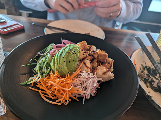 Food is good with beautiful plating and aromas. Atmosphere is wanting - music is too loud and you have to practically shout to have conversations. This may be due to the timing of our reservation (7:30 pm - dinner crowd is pretty robust in places like this) and the day of the week (Friday). Speaking of reservations, our party of three arrived on time but still had to wait for a table, as the hostess seemed to think we were interested in patio seating, when I made it a point to avoid choosing that when making the reservation (it was a mid-March evening in the low 50's, very breezy, and the sun was going down - why would I want to sit outside?). Lights kept dimming and brightening randomly and it made the place look like it was having power surges. Service was okay - again, they were busy, but I have been in busier restaurants and still saw the waiter/waitress more often than we saw the one we had that night. Also, two one-stall unisex bathrooms in such a busy place is problematic. I don't think this was a good spot for E+O to have another location - it's too cramped for the ambiance they want to convey. Parking can be an issue in this congested downtown area and there are very few spots available just outside the restaurant, so be prepared to find a space further away and do...