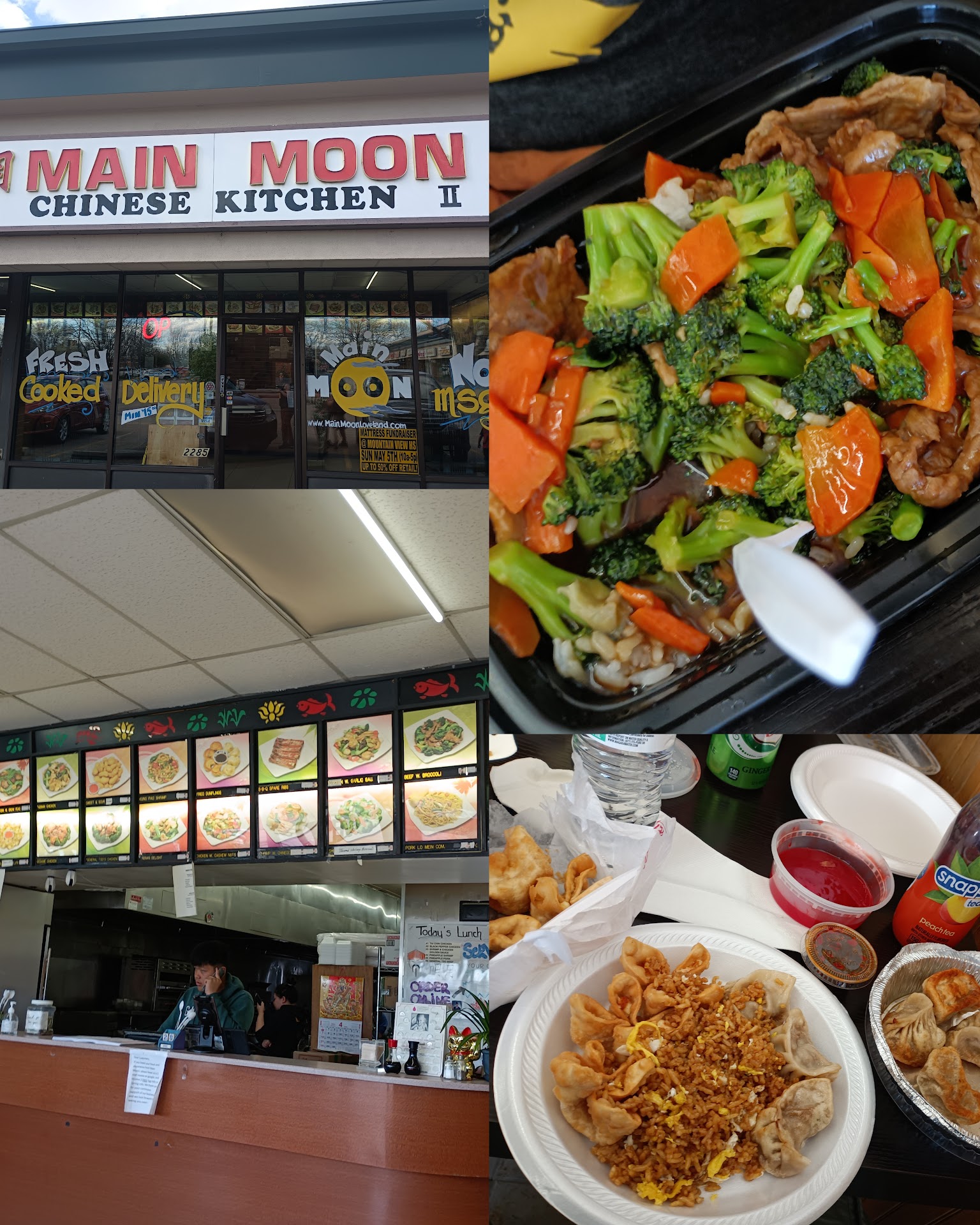 Read moreIf there was a way to leave no stars, that's what it'd be. It has to be the worst Chinese food I've ever had. My partner ordered general tsos. It was OK. I'd say a bag of frozen would have been 10 times better. His rice was hard and undercooked. Only had onions and pork, no veggies. His egg roll was undercooked and mushy. I got chicken lo Mein with shrimp. The shrimp was overcooked and rubbery. There weren't any veggies. A few slivers of celery and carrots. And most importantly the noodles we more than mush. 16.50 straight in the trash. We also got cheese wontons and they were really undercooked. No sauce packets. No fortune cookies. Way over priced!! Will never eat there again. I would recommend you don't either. Good luck staying in business, Main Moon. In response to the reply from main moon: I did not just move to town. I was born and raised on the front range as well as New York. I know what quality...