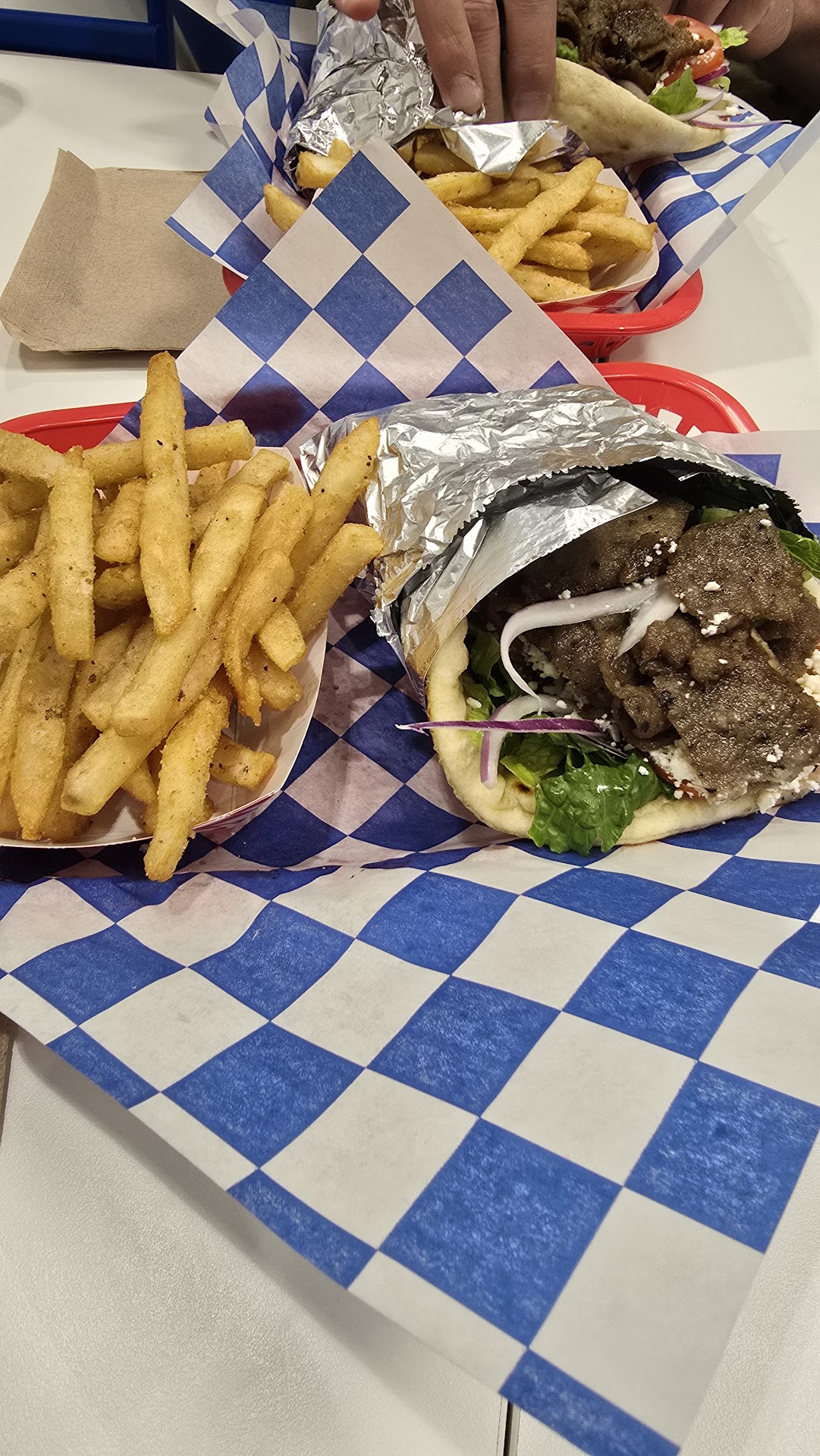 Read moreJust ate dinner here for the first time. It gets a 3 because the food was good. However... nothing is fresh, besides the veggies. We were also shocked to see that the gyro comes from a bag, and they put it in the fryer to heat it up. Gyros are supposed to be fresh and light, not soggy in fryer oil. The small was huge and my other half got a large, and it was ginormous. The portions are decent for the price. I just couldn't believe everything came out of a bag. I don't think they actually make anything. đ