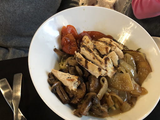 My wife had the zucchini noodle Thai bowl with zucchini noodles, bell peppers, mushrooms, and sauteed onions in a Thai peanut sauce ($9 + $4 for chicken). The flavor of this bowl was a lot better than the fajita bowl. The Thai sauce was plentiful and very good!