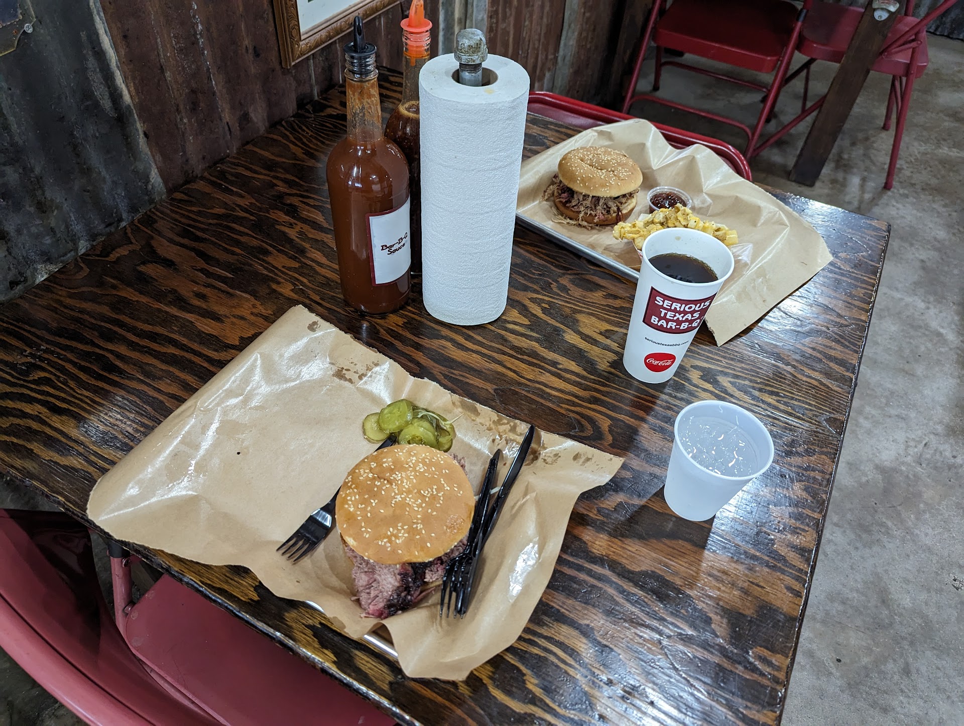 As a native Texan, I wanted to give an honest review. The service was great but the bbq was not so great. The brisket was undercooked (tough rather than easy to pull apart) and didn't have much of a smoke flavor. The smoke ring was evident but the flavor wasn't there. The sauces were a disappointment. They were kinda like syrup rather than sauce with limited flavor. (Similar to Rudy's BBQ out of San Antonio but without the flavor.) The spicy version was better because it had some pepper flavor. The Blackberry cobbler was good. The beans were pretty good. The ribs were much better than the brisket in flavor. They were a little tough but that's how it goes with smoking ribs. Small thing to some, but the Dr Pepper had a weird flavor, too. Not sure if it was the water source or what, but it didn't taste right. (Dr Pepper is important to Texans, too!) The sweet tea was good, though. All in all, I would recommend Nordy's in town rather than Serious Texas. It may have been the day or the location, but this wasn't Texas BBQ. Texas BBQ has its variants like mesquite in West Texas vs Oak in central, but it has to be pull-apart flavorful no matter where you get it. I'd recommend a trip to Franklin's in Austin, Big Bib in San Antonio, and The Original Rudy's in San Antonio for...