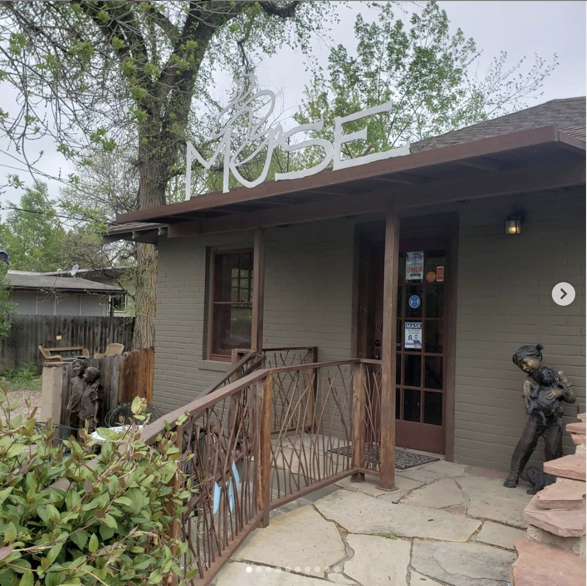 Read moreI love, love, love this coffee shop. It has great coffee, very helpful and courteous staff, and a unique atmosphere. They have tables, couches, and chairs set up inside under chandeliers made from old china tea cups and saucers; and lots of outdoor seating in the garden amongst flowers, shade trees, and bronze sculptures. We've had breakfast here twice since we moved to Loveland. The first time we had the Millet sandwich (homemade bread, parrano cheese, egg, avocado, roasted red pepper, and arugula) and we would both definitely order it again. The second time, my wife got the pecan roll and loved it, and I got the Hemingway (homemade bread, olive tapenade, artichoke hearts, tuna, and arugula) which was good but was maybe a little too olive-y for me. I know I had this sandwich about a year ago and I really liked it, so I don't know if my tastes changed or the...
