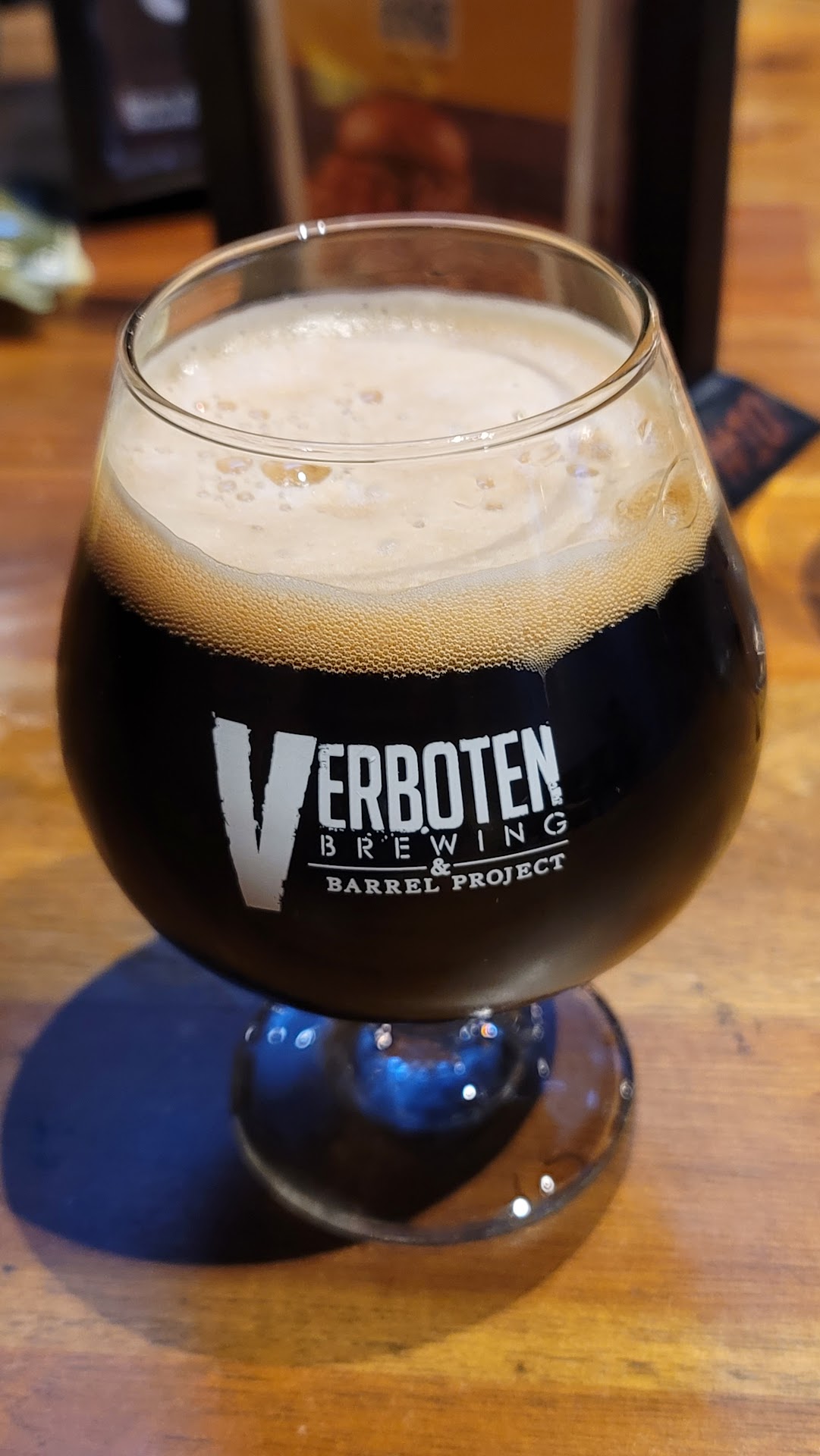 Read moreWe like stouts, therefore we like Verboten Brewing. It's that simple. "Darkness" bourbon-barrel aged Irish coffee stout is really good. "Darkness Cellar Reserve" is fantastic, and well worth the extra dollar. Both are STRONG beers and strongly suggest you limit yourself to no more than 2. Ask me how I know! We haven't tried all their stouts yet, so I am not recommending the Darknesses above any others - yet.