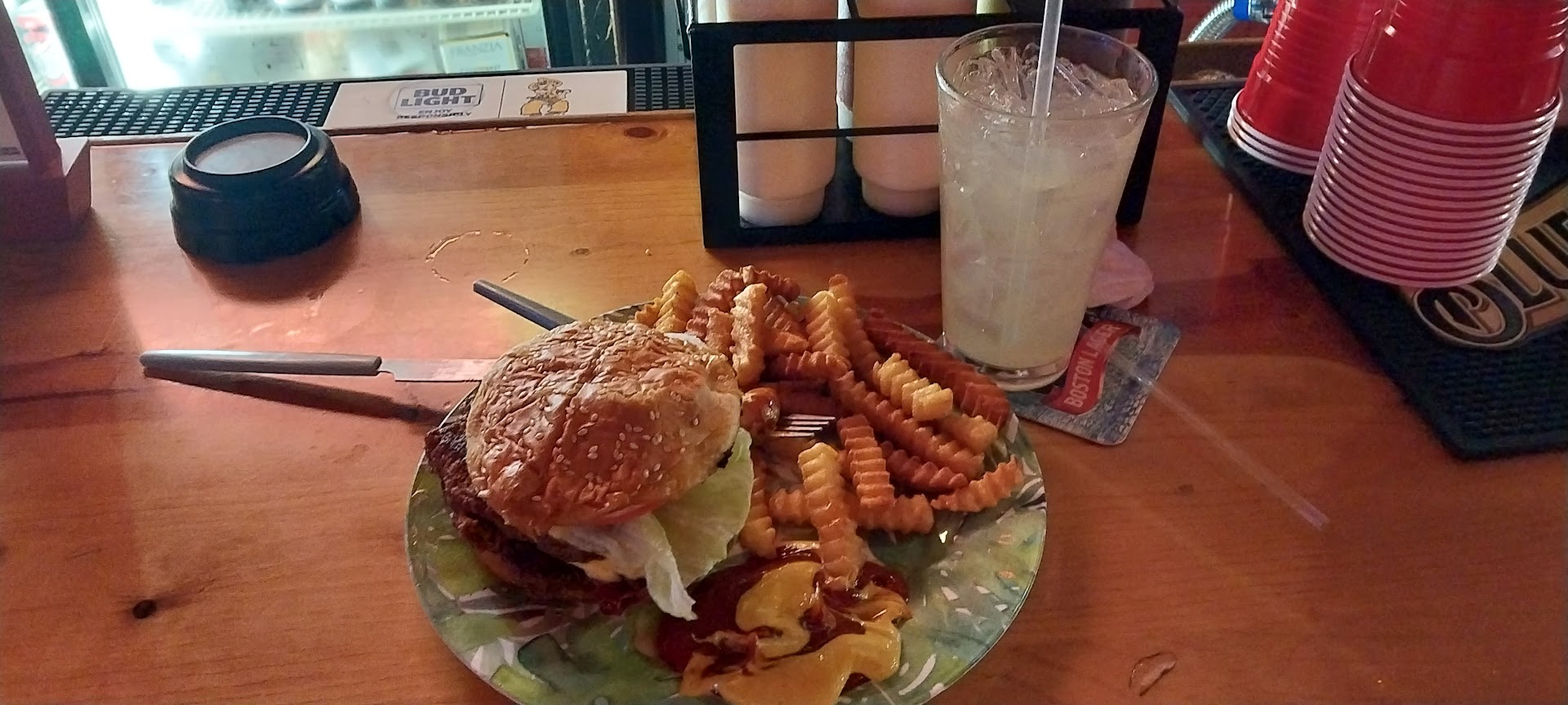 Read moreI cannot say enough good things about this place. While I don’t attend a night out at the bar, I have ordered food from here multiple times. It is AMAZING. The Shoshone Burger is top tier. The owners, managers and employees are always so friendly each time I call and go to pick up my food. The prices are wonderful and lucky are we to have options on food to eat in this...