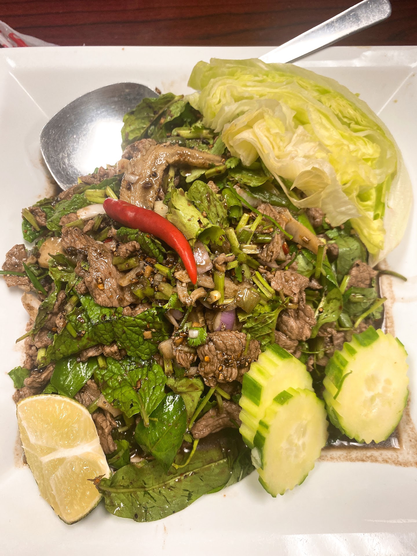 Visiting from Toronto, i had to try this. my dish (beef laab with 3 stars aka 3 chilies) was one of the best things I have ever eaten in MY LIFE!! I cant describe it except that it was exceptional. The sticky rice itself was a bit hard but who cares. The portion sizes were massive. I am in love. I dream...
