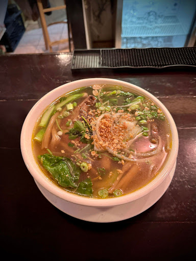 Read morealready had plans when I got here, but when I saw this in the specials section, I had to try it. Bun Bo Hue (Hue City Soup) ($10.95). "Hue Special Soup - A spicy large vermicelli soup, with soft tendon, sliced shank, ground shrimp and pork." The actual menu said pork blood, but they don't do that anymore. It wasn't vermicelli noodles either, and the tendon was missing, but I got sliced brisket instead. I also got a pork knuckle. There were very delicious pork cakes in the soup. It was spicy but really just pleasingly spicy. This was one savory soup chockful of flavor.