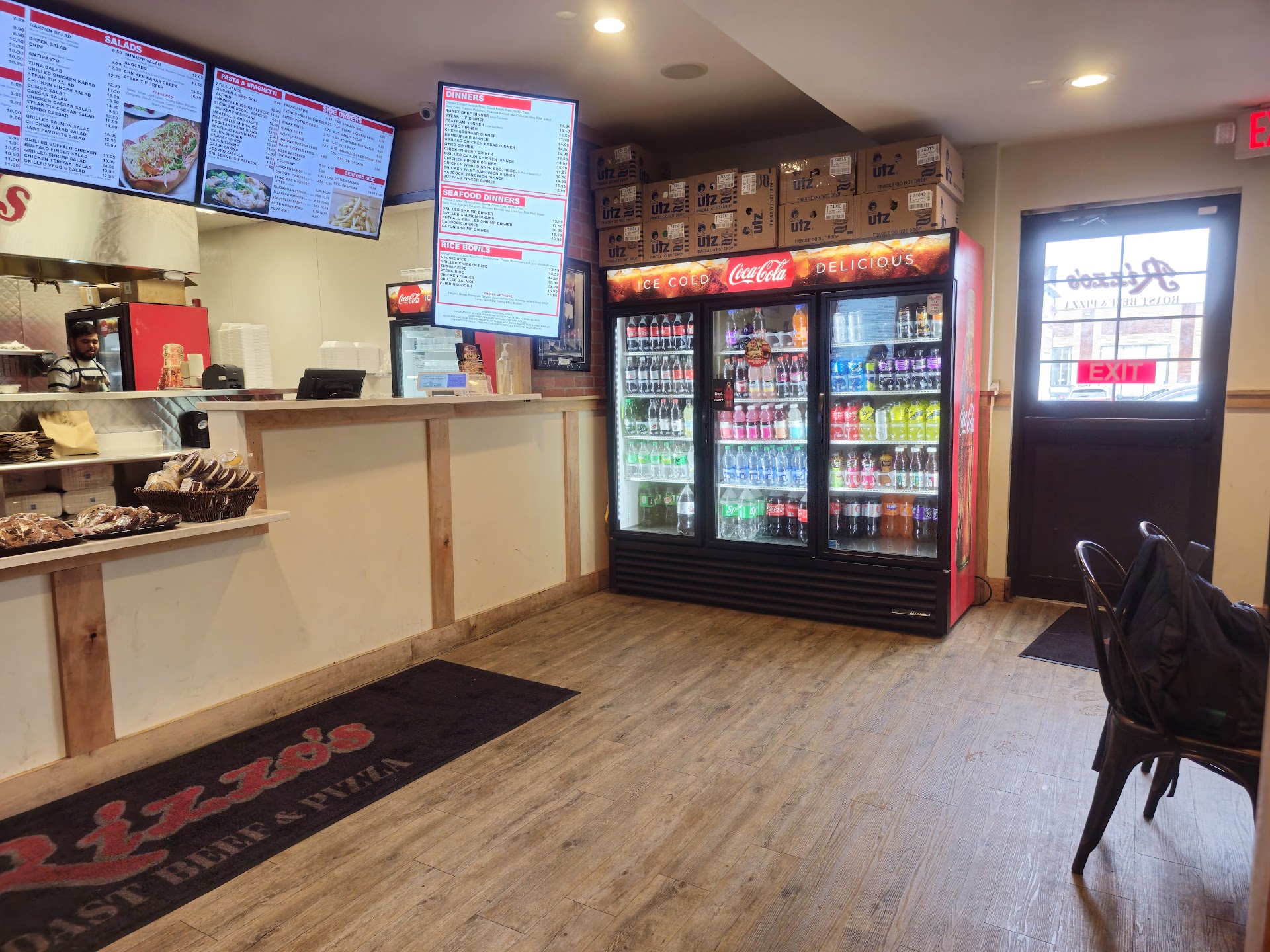 Read moreWent here on a personal recommendation of a friend to try their roast beef sandwiches, to which I've never had Rizzo's. Upon arrival was lucky enough to find a parking spot directly out front on the road even though they still had parking spots left in their parking lot. I entered and a couple was eating inside, I went to the counter to order. I was greeted by a pleasant and polite employee that took my order. I ordered a super with sauce and cheese, a large with mayo and tomatoe, small fry and a large fried mushrooms. The entire order took no time at all. After getting my order to go my wife opened the bag and it literally smelled so good. I tried a fried mushroom first and it was great, what made it awesome was there in house marinara sauce, very flavorful and chunky! The fry's were also very good, it was those double fried battered kind, great tasting. Now,.... Onto the main event, my super roast beef. Oh my, this thing was absolutely Huge, seriously felt like 2 pounds of roast beef in this thing and the sauce was wicked good. My wife's sandwich was equally as good, and for a large the quantity of meat was incredible as well. Definitely the roast beef sandwiches are on par or better than some of the local Massachusetts legendary sandwich shops. BTW, the couple had this massive calzone that looked like 20 pounds. Highly recommend and I'll...