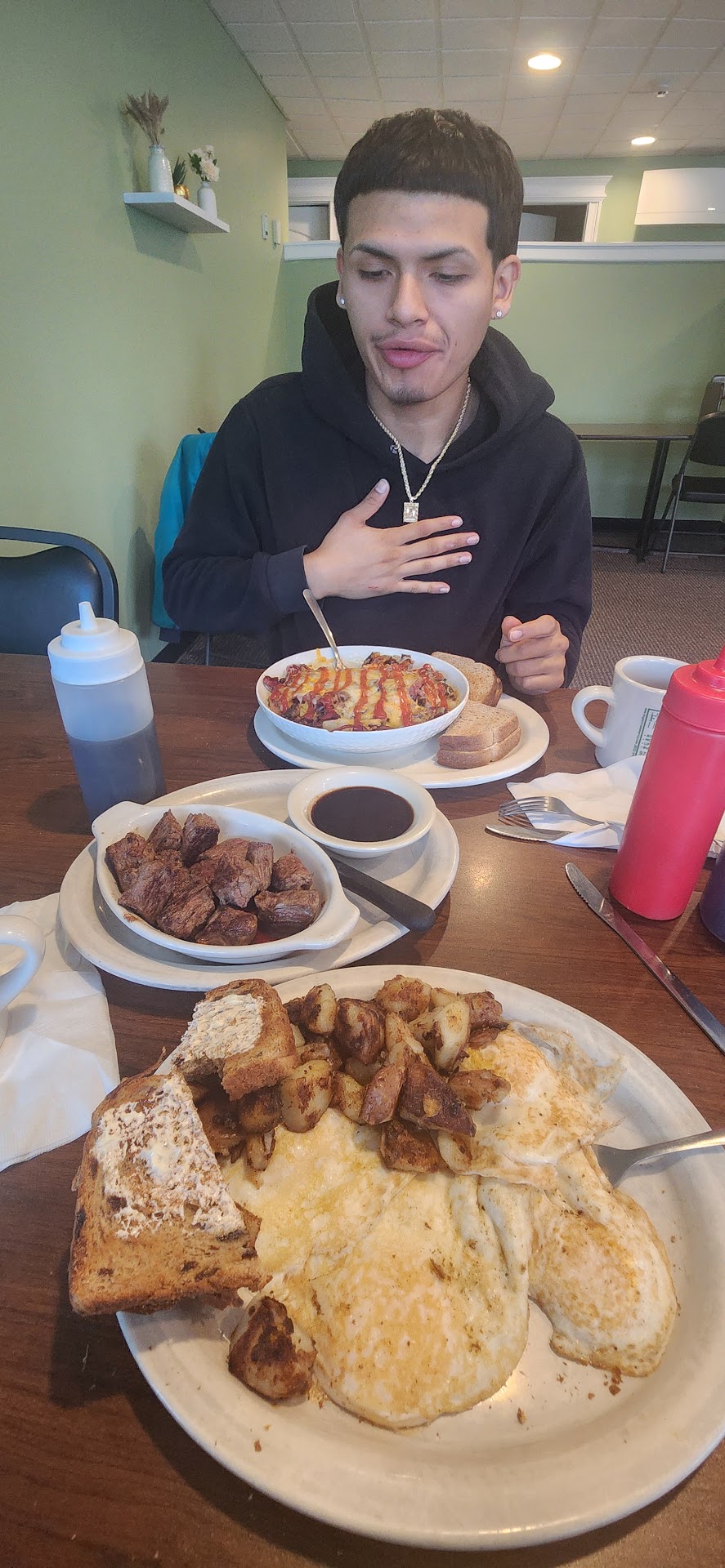 Read moreFood was excellent too bad the service wasnât. Waitress was too busy being social, which is good but not when u have 5 parties waiting to be seated. The chef had to come to the table to see if we had ordered yet!! The waitress refilled my coffee and the pot was so full it spilled on the table.. didnât wipe it up the waitress behind the counter must have seen it and came over to wipe it up. My husband got his food and I figured mine was right behind his... nope more than 5 min later mine came.. toast was brought out when I asked for a to go box... cold!! If they want to stay open they need to train their staff better because the...