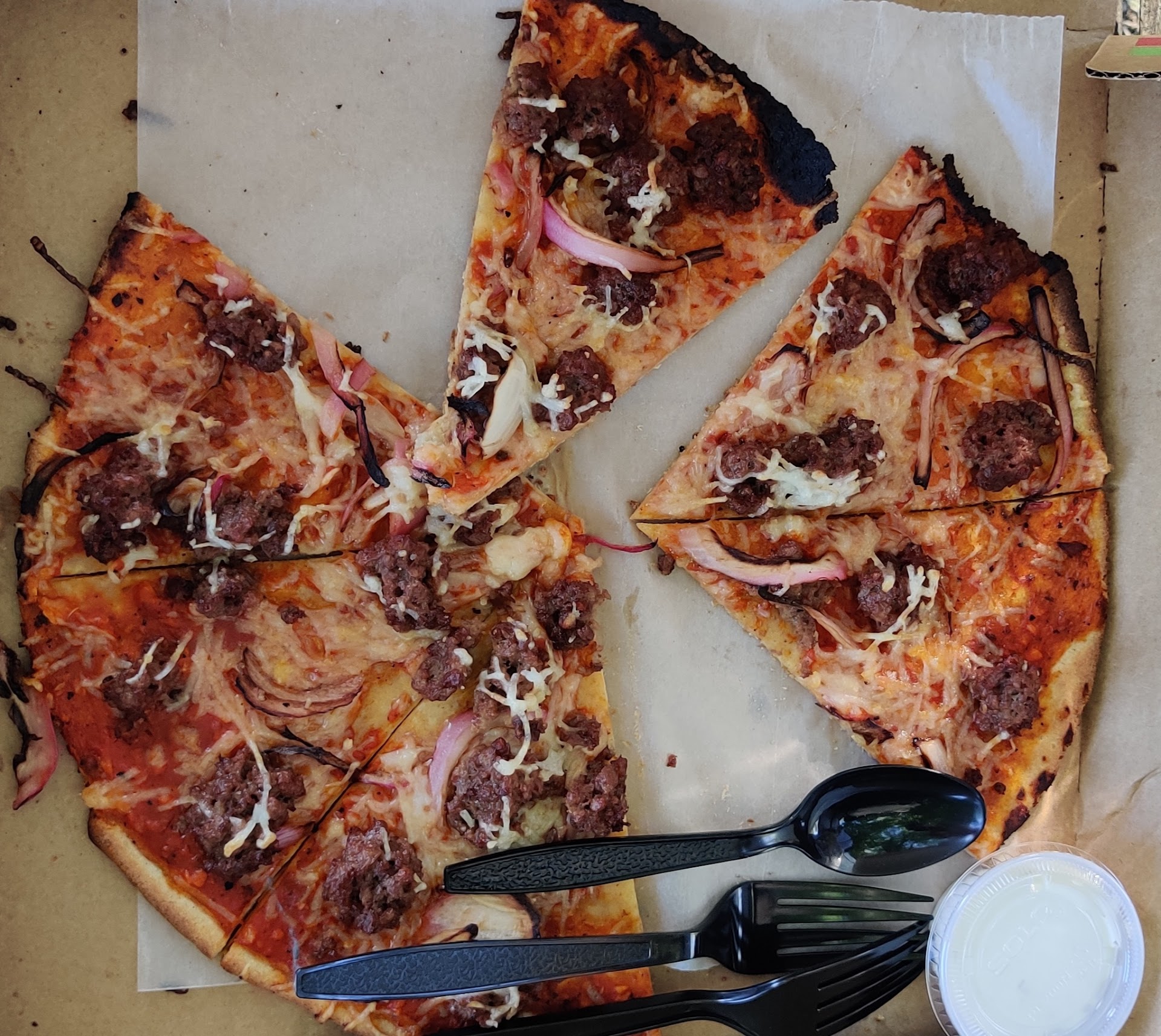 Read moreI ordered a veganized Falafel pizza for pickup. Their website for online ordering is very simple to use. I was able to order in advance to pickup when I got out of work. When I arrived there was plenty of parking spaces, and upon entering I was greeted by a smiling woman behind the register. I gave her my name and she let me know that my order had just been completed. It was a very pleasant experience. I was so excited to try the pizza. When I opened the box it was beautifully topped with falafel, tomatoes onion, cilantro, spiced vegan mayo, and vegan cheese (as requested). It tasted just as delicious as it looked. The ingredients were all very fresh and I enjoyed their crust. They have many other options on their menu and I am happy to see the uniqueness of their toppings! They have classic cheese which can be veganized, as well as Indian style pizzas with flavors like Cauliflower Manchurian, Paneer Tikka Masala and others! The place was very clean , l will be...