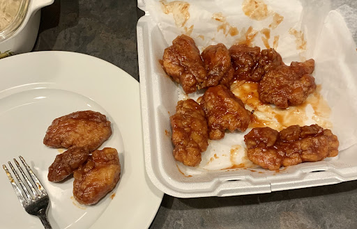 I placed an order for a dozen boned in wings, and took 65-minutes to make their way from the kitchen to the bar top. Like I stated earlier, 1 of 4 customers in the joint (three were only having liquid lunch) so not like the kitchen was overrun with orders. The wings were flavorful but somewhat undercooked and several âdrumsâ were still pink inside, so off to the side they went. I did, however, enjoy 7 of 12 wings.