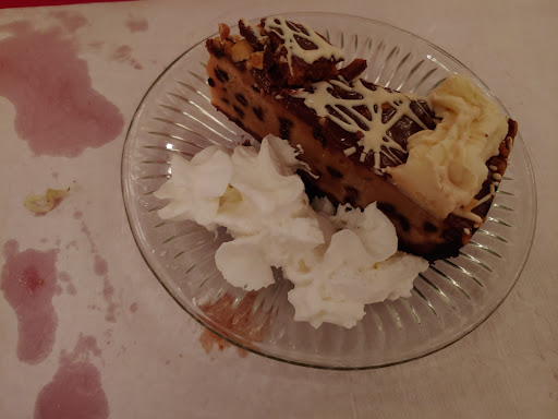 It was then it began, the long wait... which is a big reason why I would have only awarded 4 stars. It was about 45 minutes between the time we finished the salads, and our main dishes arrived. My gorgonzola filet looked very small, all by itself on a large dinner plate, but it was indeed delicious, prepared medium rare, exactly as ordered. Unfortunately, my wife remarked that her risotto with shrimp was crunchy, & seemed to have been waiting under a heat lamp for some time. My pommes frites were delicious, prepared with a light breading and served with a sweet tomato reduction on the side (good fries, they were breaded & she gave me ketchup).