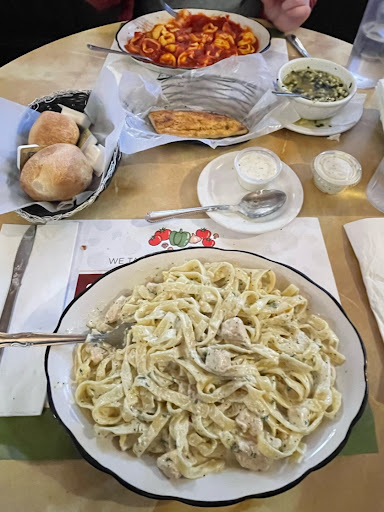 Read moreI was really excited to try this place because the menu looked great, with all the traditional Italian favorites, and when we walk in there's a man speaking Italian to the hostess. It was busy, but we got a table fairly quickly, in less than ten minutes. Unfortunately the food was just meh. I had the baked ziti, one kid had fettuccine Alfredo, and my other kid had penne primavera. Our salads came first, and they were warm, to match the building itself. The restaurant did not offer much relief from the 85-degree heat outside. The salad seemed fresh, with lettuce, tomato, cucumber, and onions, but having it warm just was not appetizing. The complimentary bread was piping hot, so that was nice, and it tasted fine with butter. Nothing to write home about. The baked ziti had no flavor. Just noodles, tomato sauce, and cheese, but didn't seem to be seasoned at all. I asked the kids how theirs was and we all felt our entrees were a 3 out of 5. I had a Pepsi and the kids had water, and those were all great. Very cold and the right amount of syrup in the Pepsi. And our server was fabulous. Very friendly and prompt, got everything right. No complaints there. Also the price was fine: $52 for the three of us. But if you're looking for flavor,...