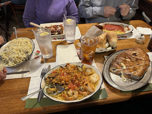 Read moreNeighborhood Gem - Went out here this evening with 4 other family members (been coming here for years and plan to come back again). We enjoyed good food and had a good time. Overall I rate it 4.4 out of 5 for the food and 5 out of 5 on service. We arrived at 6 PM in the restaurant was packed. However, even though they were extremely busy our wait person was very attentive, got us our drinks quickly and checked in frequently. Food was good to very good - everyone started off with fresh salads and we had a couple of bowls of the wedding soup. Salads were fresh wedding soup was very good 5 out of 5 on the soup. Dish 1: fettuccine Ă la carbonara - huge portion just as described in the menu (not traditional carbonara, but an alfredo version) rich, filling, tasty 4.5 out of 5. Dish 2: linguine Pescatore with scallops, shrimp, muscles and clams - seafood was all cooked perfectly, dish was great where seafood was highlighted and not the sauce ( if I had a critique, the sauce was a bit watery and couldâve used a pinch more seasoning) but it was very good 4.5 out of 5. Dish 3: vegetarian calzone was cooked well tasted great and the sauce was excellent which bumps the overall rating to 4.6 out of 5 (the filling seemed a tad light on mozzarella but the sauce made up for it) Dish 4: raspberry chicken, I did not try this but I heard it was great and would get it again if they came back. 5 out of 5. Dish 5: chicken Parmesan chicken was cook well pasta was done well and 4.5 out of 5. This place is a great value when you consider the combination of the quality, service, and price. We...