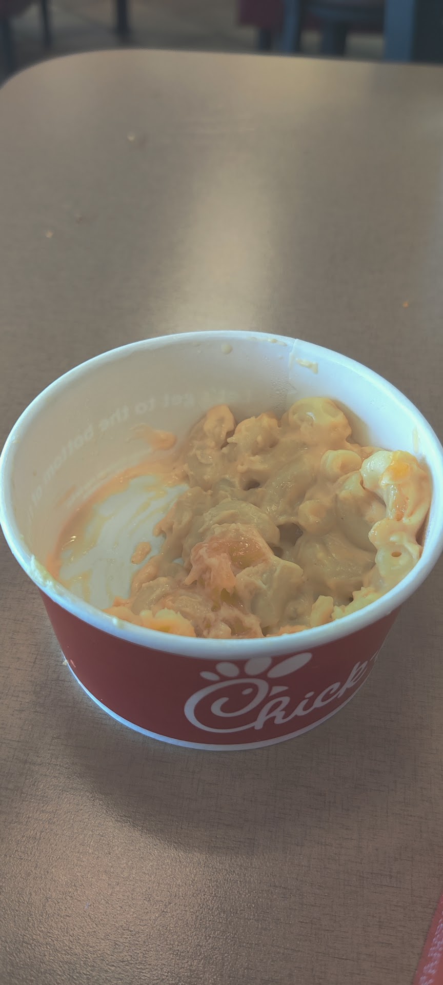 As I ate my meal, I observed the overall dynamics of this location and found it to be unlike any other that I've visited. Management was not present and employees seemed to be less than motivated without that crisp attentiveness for customer service that is so evident in other locations. Upon exiting the store, I noticed an employee sleeping on one of the outside tables and I just remarked to myself that this was par for this course at this location. Hopefully someone "wakes up" (no pun intended) and does something to get this location back in shape and consistent with the values and appearance of the many other Chick-fil-A locations I've enjoyed visiting...