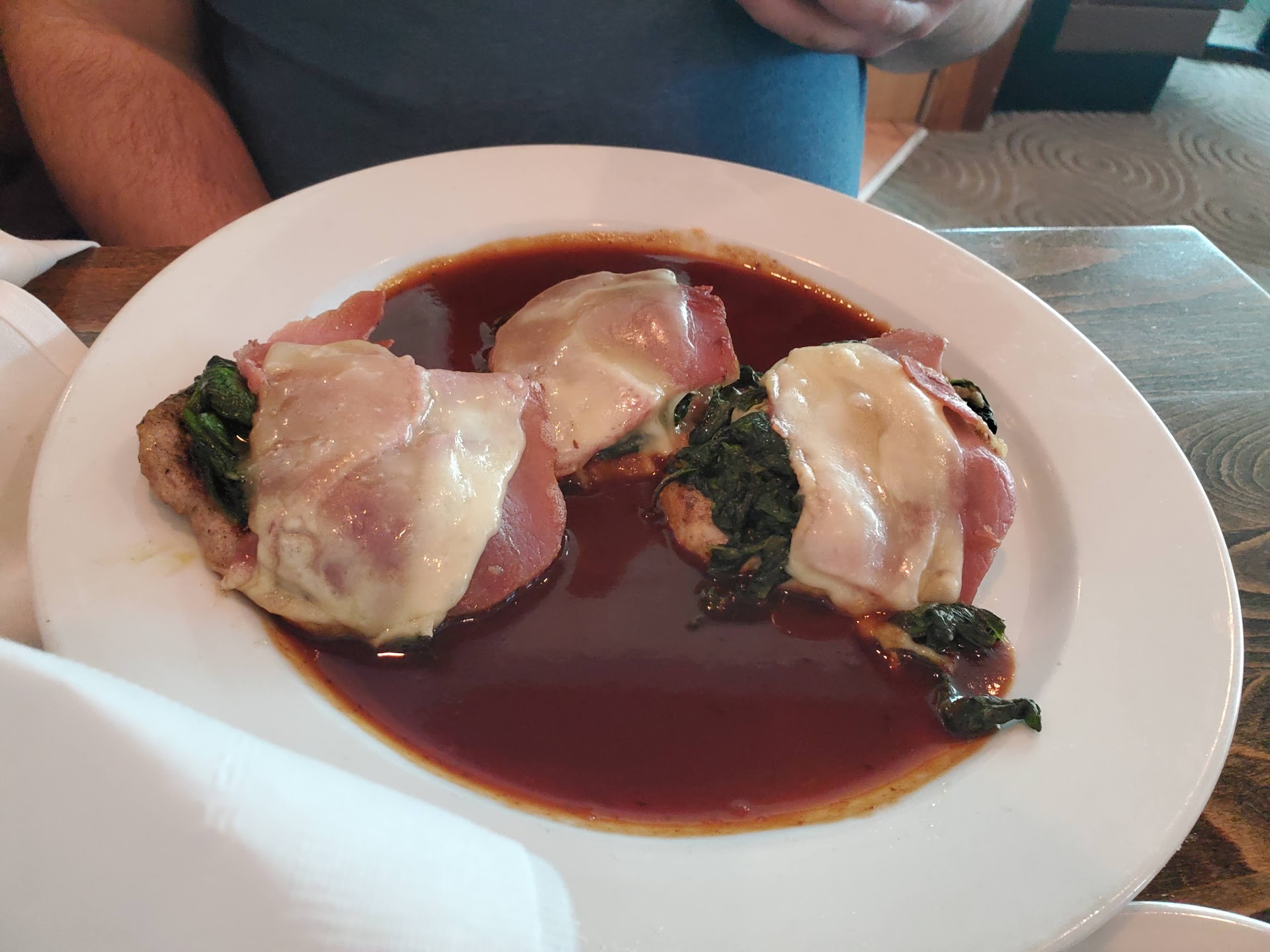 My wife got a chicken parm dinner with gluten free pasta and a piece of grilled chicken. The pasta itself was ok, but the sauce was the same as mine. The piece of chicken looked like half of a leftover chicken breast they butterflied to make paper thin.