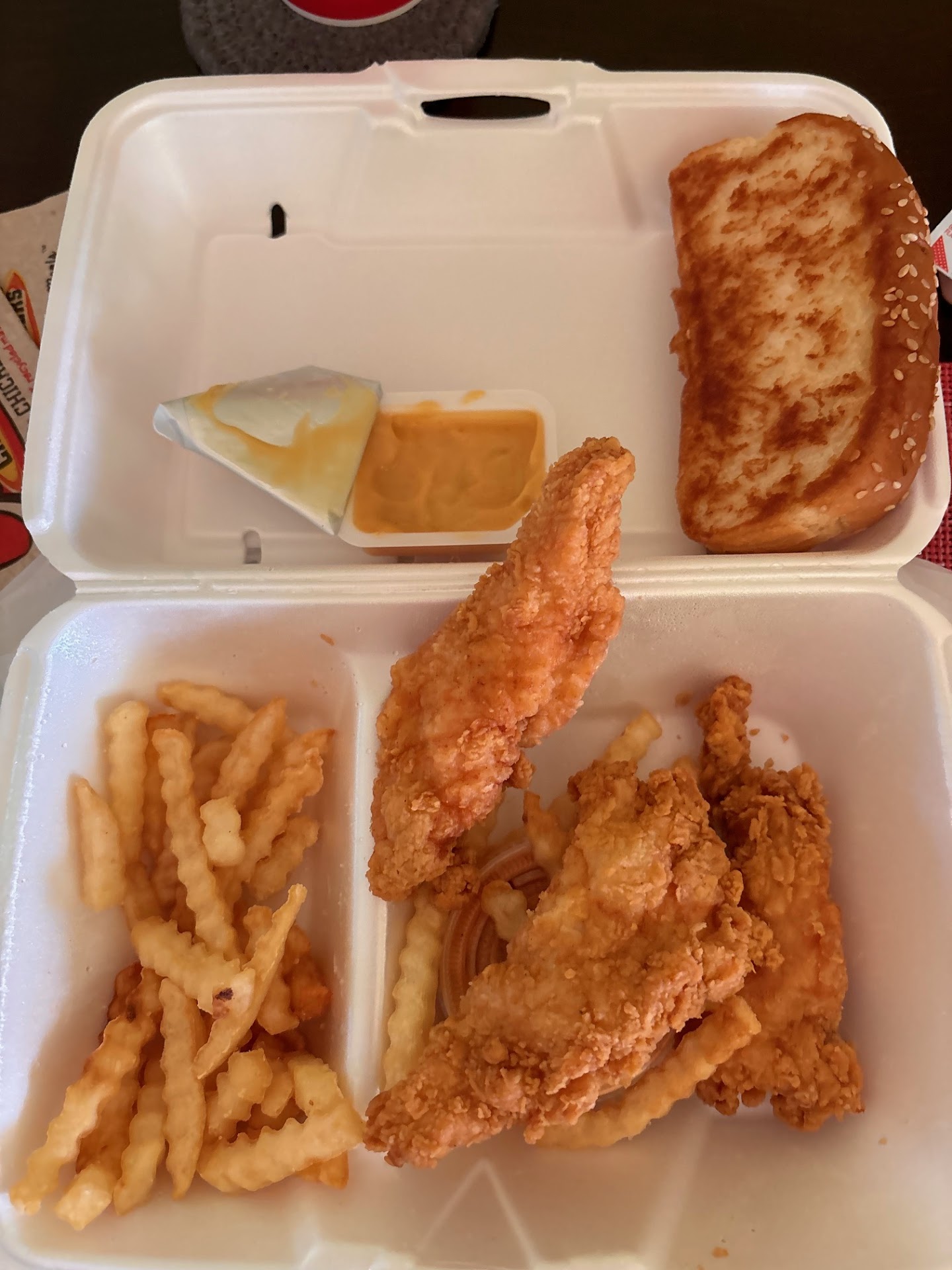 When I got home with my meal, I was incredibly disappointed with the visual of the meal. The smallest chicken finger was 3in and the longest was 4 3/4in. Yes, I measured it with a ruler. That is how astonished I was. Complete disbelief.