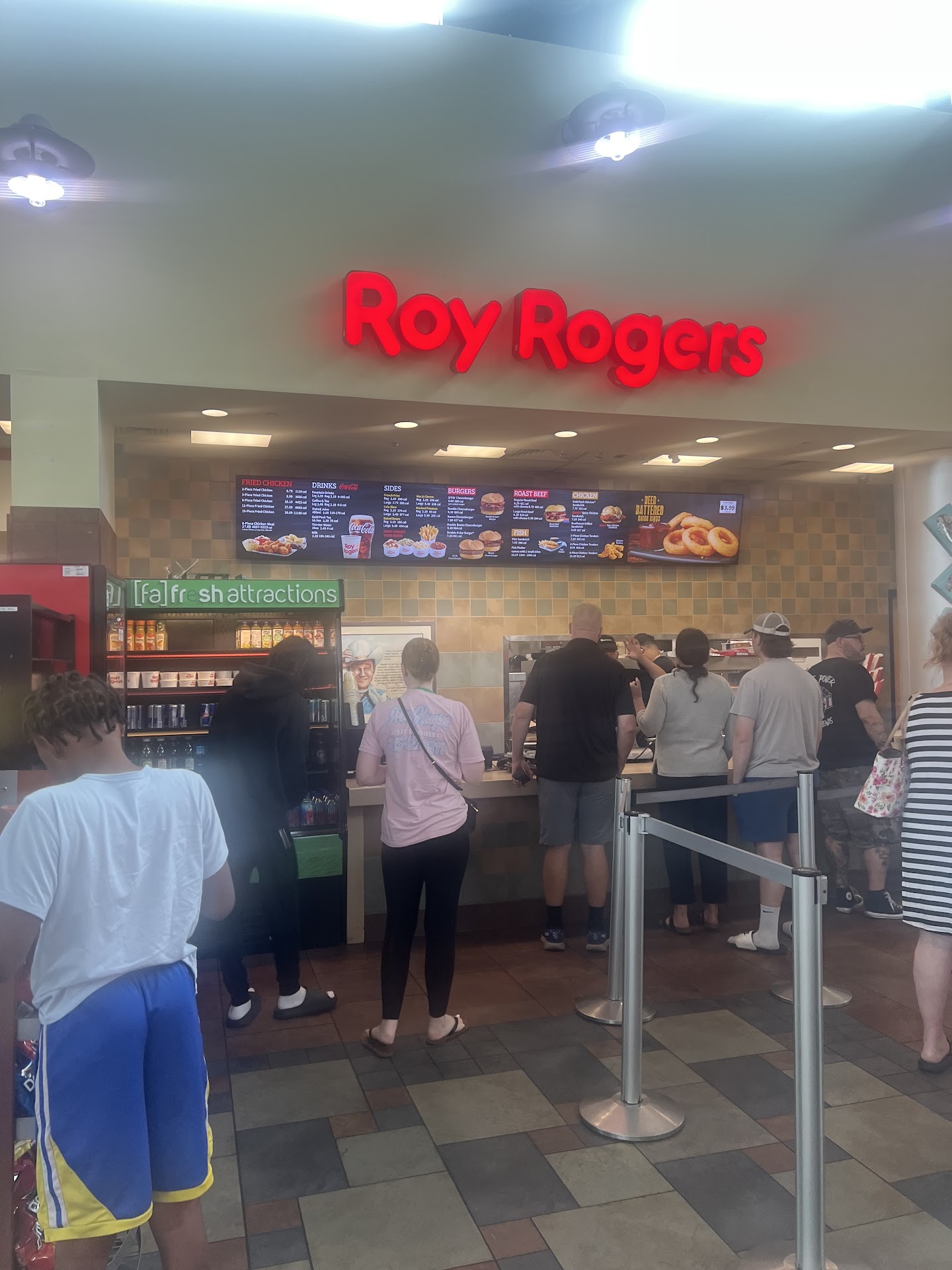Long Lines, the service plaza folks thought it would be a great idea to, instead of hiring extra staff to clean both restaurants they'd just lay off all employees and shut down the other food choice, because Roy's was easier to clean and easier to stock ingredients. So now instead of having people 50/50 between restaurants they all pile up at the ONE option for food, meaning the skeleton crew they left working, max two people, has to handle 4x as many people and double the duty with the added cleaning. Really makes it great when you're standing in that super long line, deciding what you want to eat and then when you get to the front, you find out they're FALSE ADVERTISING that you can get a chicken sandwich when you can't.