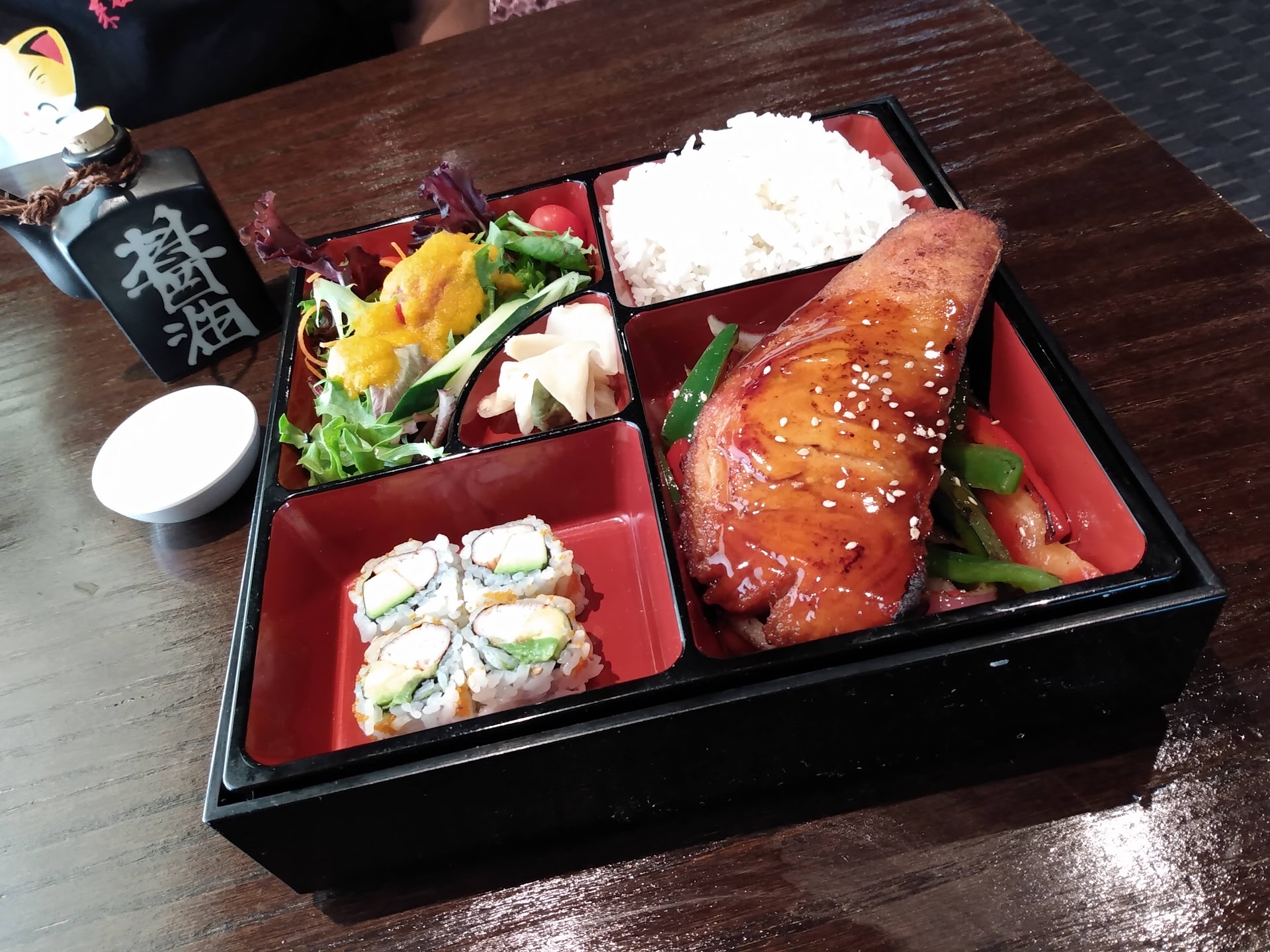 Read moreA beautifully appointed sit-down restaurant offering authentic and exceptional Chinese and Japanese cuisine. My sister and I ordered the Sushi Pizza appetizer, a lunch bento box (with teriyaki salmon) and a rice platter topped with Cantonese-style roasted pork and duck with bok choy.