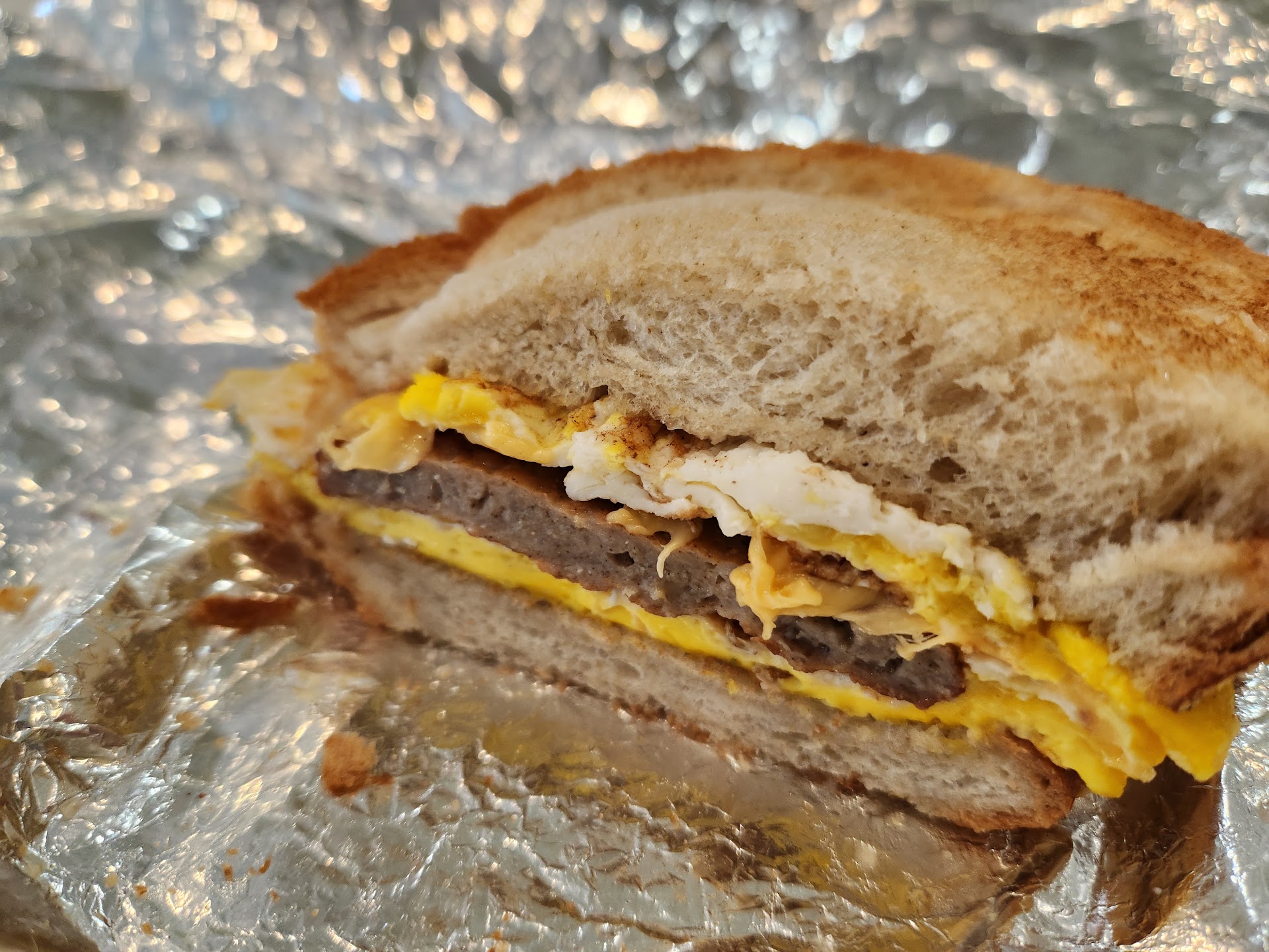 Read moreI ordered a breakfast sandwich to go on rye with a fried egg and sharp cheddar. It was very quick and easy to pick up, but the sandwich was disappointing. The rye was overly thick, soft and dry, not buttery toasted like most rye sandwiches I've had. The egg was fine and plain. The sausage was a thin manufactured patty (the real deal breaker) and only a little cheese on the bottom. Overall I wasn't impressed, but the price was ok. I won't get this sandwich again, but I would try one of the chicken ones. Also, the dining room was simple and clean...