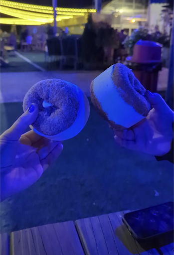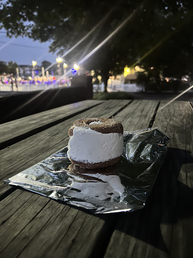 The whole set up of Shady Brook Farm is adorable. We pulled up and people are having drinks, playing corn hole . . . Amazing! The seating area was lit up blue with ample seats/tables. I ordered the apple cider ice cream sandwich and it's really good! Just be aware you must commit to letting it thaw. This is something you can commute back home with and still have it intact. I ended up breaking the donut in half, packing one half and splitting my half into twos. Those pieces melted easier and I ate them onsite. My half piece made it home all the way back to Jersey City, NJ. The only remark/issue I have is the cashier. When we lined up to order, the cashier was talking to her friends. We were just standing over to the side patiently waiting while the cashier continued talking to her three friends. This went on for about 5 minutes. Someone in the back finally said to the cashier are they ordering. This lead her to have her friends move over, but she still did not take our order. More of her friends came and she started to talk to them as well. Finally after they all left we got two donuts with cash. This took about 30 seconds since their premade/boxed and ready to go. Just very frustrating standing there when staff are having not so small, small...