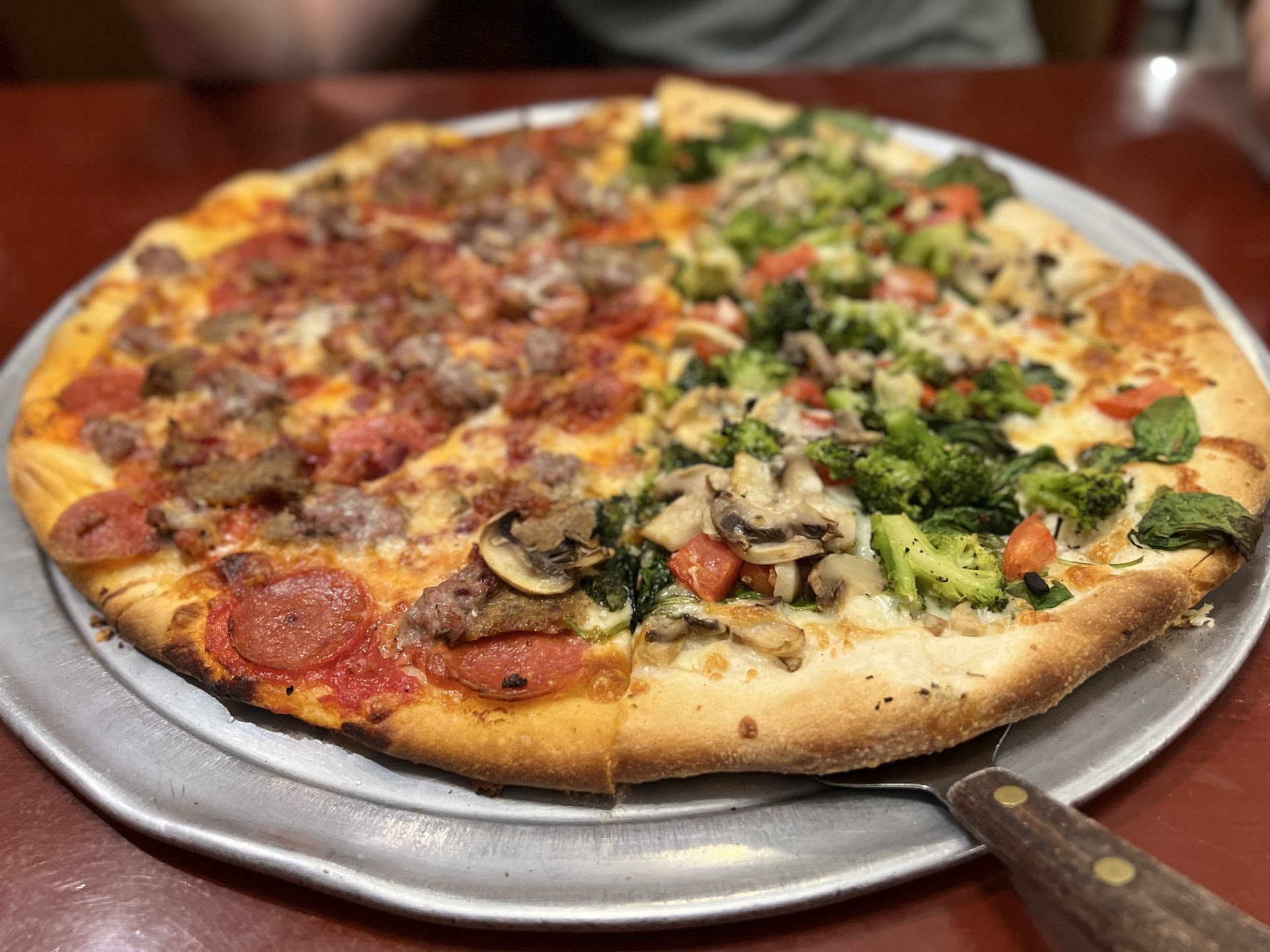 Our friends picked this place because someone told them it was good. When we got there all the tables were dirty, so we picked the least dirty one and sat down. We were waited on by a very young kid who was probably at his very first job. He didnât really know what he was doing and he was very slow. We ordered two pizzas with the same toppings, but one gluten free. When asked if we could get the gluten free with those toppings, he said yes, then said it only comes in one size. I was confused what the size had to do with the toppings. When the pizzas came out, the gluten free one was a regular cheese pizza without the toppings we asked for. I asked the kid about it. After several seconds of blank stares from him, my husband figured out that they must not put anything on the gluten free pizzas because theyâre premade frozen pizzas. The kid said, oh yeah. Sorry. I decided to eat it even though it wasnât what I asked for. It tasted like exactly what it was. A frozen pizza I could have made at home. My husband said the regular pizza wasnât...