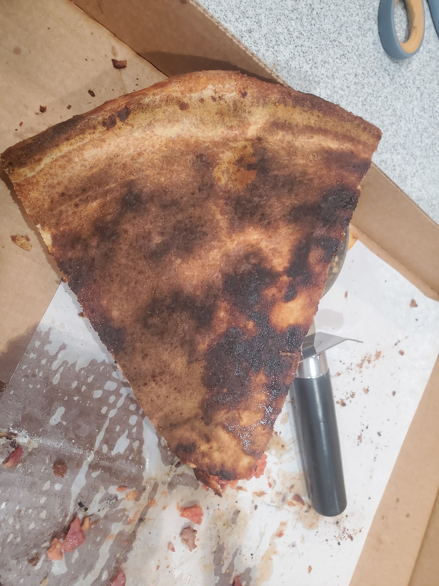 Read moreStopped in on a Wed night around 8:30 for a couple slices to go. Placed my order, paid, and sat down to wait a few min for it to be heated up a little. They were not busy at al, only one coupe in the restaurant. Sat there for about 10-15 minutes, and still nothing. The cashier muffled something under in breath about my slices. He forgot about them and they were burnt! Asked where my food was and was told about them being burnt. Older employee said he was gonna make a new one, I was so exhausted from a day of travel and Hospital visit with my mother, I didnât want to wait LONGER. I just wanted my money back and Iâd leave. The older employee gave me gave me two other slices, other than the really burnt ones. Left somewhat satisfied. HOWEVER, when I finally got home, the slices he gave me almost as BURNT as the first two!!!! I could barely eat one slice because the bottle was almost completely black and nasty! Will never go back there again and will never recommend this place to anyone!!! Poor service and very...