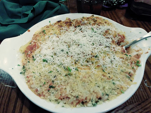Read moreNothing against this location; I’m just not a fan of Olive Garden in general I guess. Tasted like the other OG’s I’ve been to— pasta overcooked and lacking texture, sauce too sweet like store bought sauce in which sugar is a main ingredient, cream sauces are too rich and lacking texture any subtle flavors like a homemade Al Fredo. In short, all of the good here tastes like it’s been created and prepared for what they think Americans want when they decide on Italian Food as opposed to simply making and serving authentic Italian food in which the simpler, the better is often a good rule to start with. I.E. a classic red sauce contains only 6 ingredients: San Marzano tomatoes (hand crushed and strained), olive oil (single source, Italian, virgin) fresh minced garlic, fresh finely chopped yellow onions, chopped parsley, and sea salt to to taste. Add olive oil to where it just covers bottom of saucepan, add onions and simmer over medium low heat until almost translucent, lower heat, add garlic and let cook over low heat until garlic is cooked but NOT BROWNED OR BURNT. Should only take a few mins and stir with a wooden spoon to aide in cooking evenly. Kitchen should smell divine by this point :) If you burn the garlic, even slightly, this will completely change the flavor profile of your sauce, basically ruining it, so you need to start over and be sure not to burn it second time around. Once your kitchen has that perfect smell, pour in your San Marzano peeled tomatoes that you’ve crushed gently by hand, leaving it your desired consistency and being careful to remove the tough brown area where the stem was attached. Nobody wants that in their sauce and it’s a bitter part of the tomato. Simmer lightly for 10 mins, stirring occasionally and add the finely chopped parsley which simply gives your sauce a brighter fresher taste. On very low heat to where you just get the occasional bubble or two every 30secs or so, cover sauce, but leave lid ajar or open enough do as not to let heat rise. Leave like that for 15 mins while you prepare your pasta. Salt your water for pasta and bring to a boil. Cook pasta to Al Dente which literally means “to the tooth” in Italian and is generally about 2mins less than instructions on box. Your pasta should slightly resist before yielding as you bite it. *Same as with the garlic, if you overcook your pasta, toss it, and recook your pasta. Once cooked al dente, drain, but DO NOT RINSE. The starches released from your pasta help your sauce cling to your pasta. Plate pasta, add a pat of butter or olive oil, spoon desired amount of sauce and ENJOY! Save your money and make this at home with Italian...