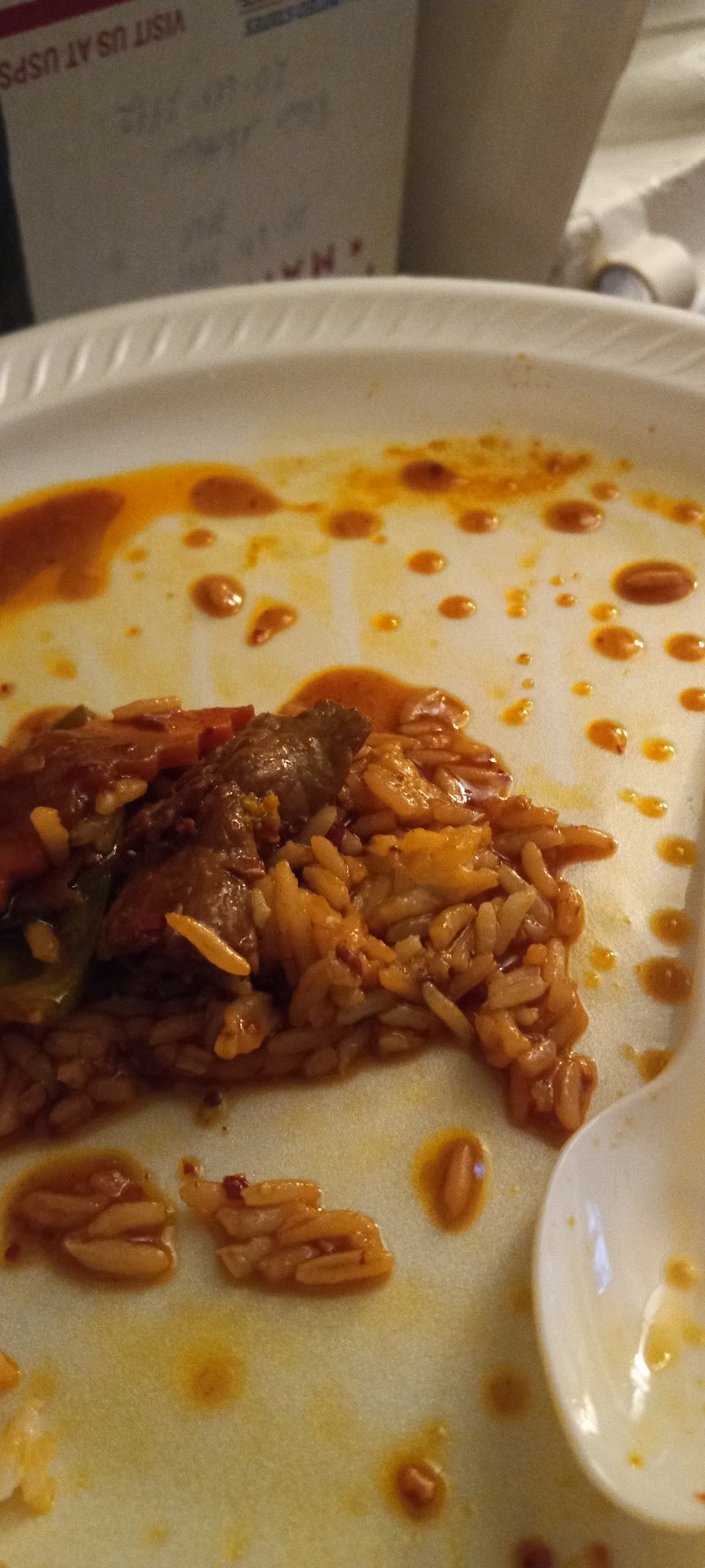 Yeah I kinda wish there wasn't a TV, but it works just fine...so misleading. It's just something to distract you if you decide to wait for your food there. There isn't anywhere to eat inside, and that's OK, it's not intended to be that kind of experience. You're supposed to order, go grocery shopping or whatever, then come back and get your food. The location is prime real estate for this function. Misleading photos of mostly eaten dishes and your spoon at a different location just feel dishonest to me, and is a good chunk of why I was motivated to write...