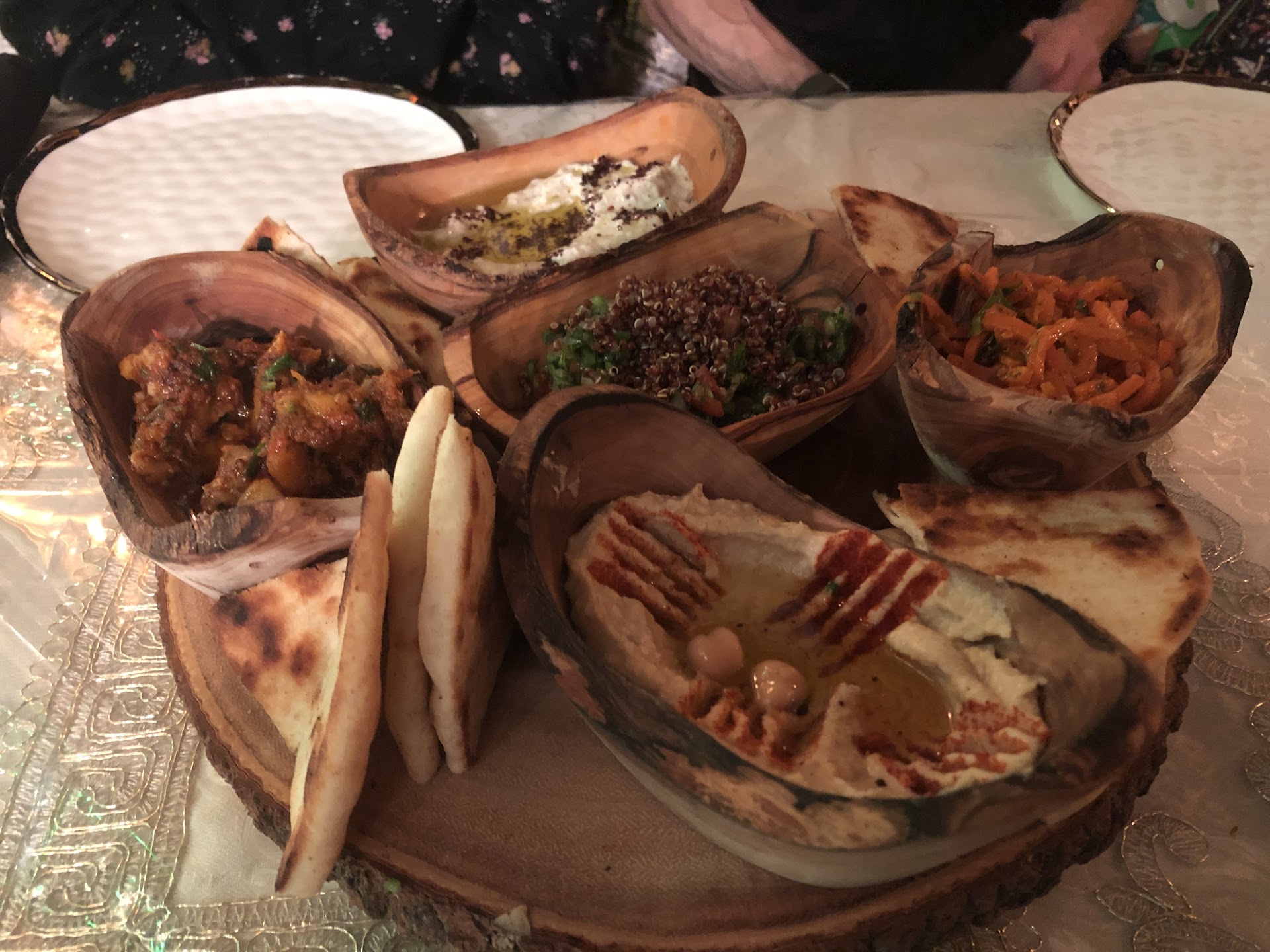 Read moreThis restaurant is, quite frankly, the epitome of charming. The decor is clearly done by hand, the painted stenciling slightly askew, the front window a darling mishmash of brocade and little sparkling candle-lamps and the odd hookah. A large mirror on the far wall stands like some magic portal in the back of a slightly chintzy bazaar, lending an airiness to the room along with the natural light from the wide front window.